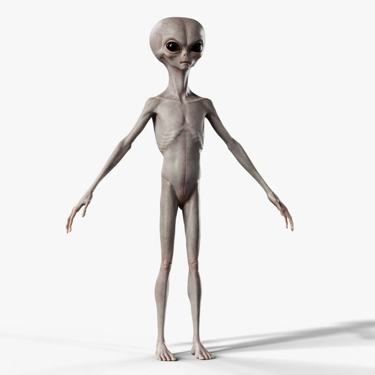- High-detail rigged 3D model of a classic humanoid Grey Alien from outer space.
