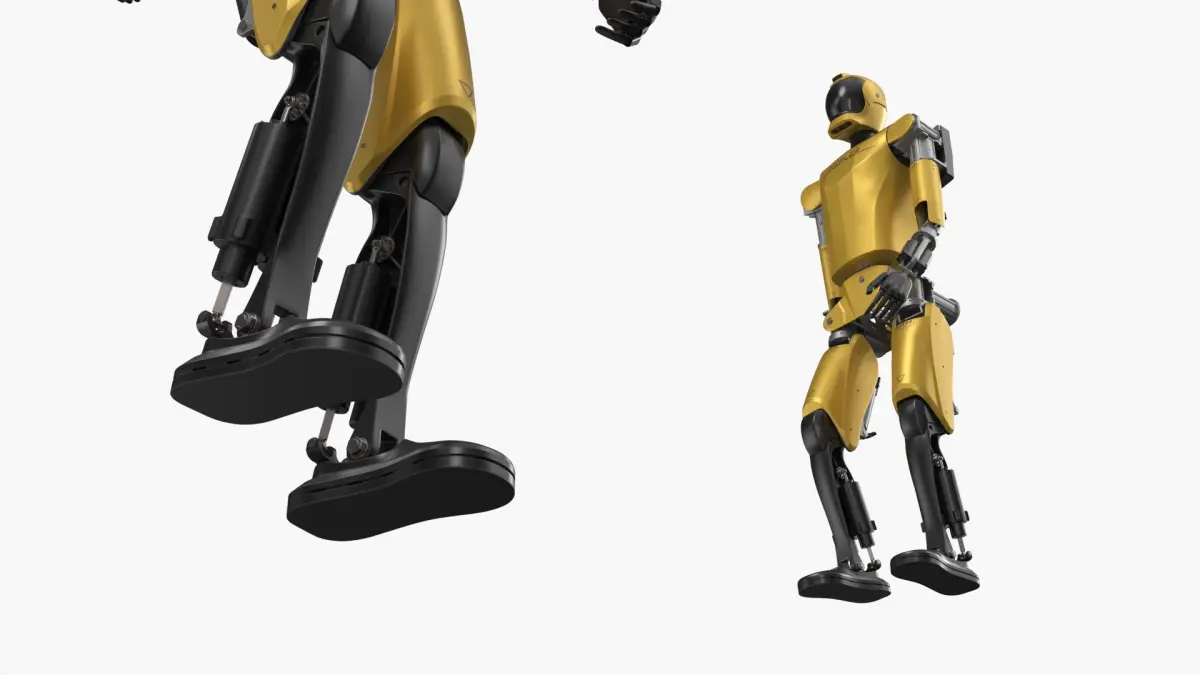 Humanoid Robot Kepler Walking Pose Yellow is a 3d model of a humanoid robot, designed to emulate human actions and aesthetics in a robotic form.