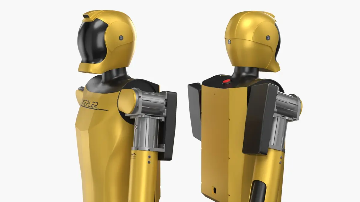 This model showcases a sleek and modern design with articulated limbs and a humanoid structure. Its yellow and black exterior gives it a futuristic appearance, while the visible mechanical joints provide a realistic touch. The Kepler robot is equipped with functional features that emphasize mobility and versatility.