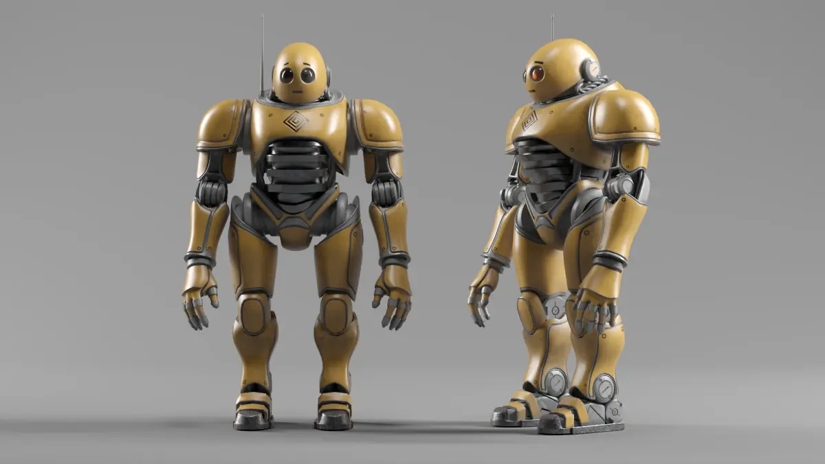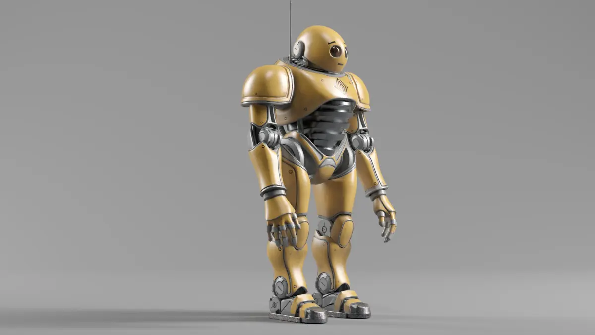 The robot comes in two material versions (Silver & Yellow) and is ideal for games, cinematics, VR/AR, and sci-fi projects.