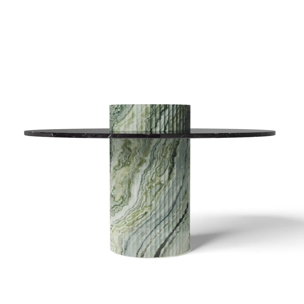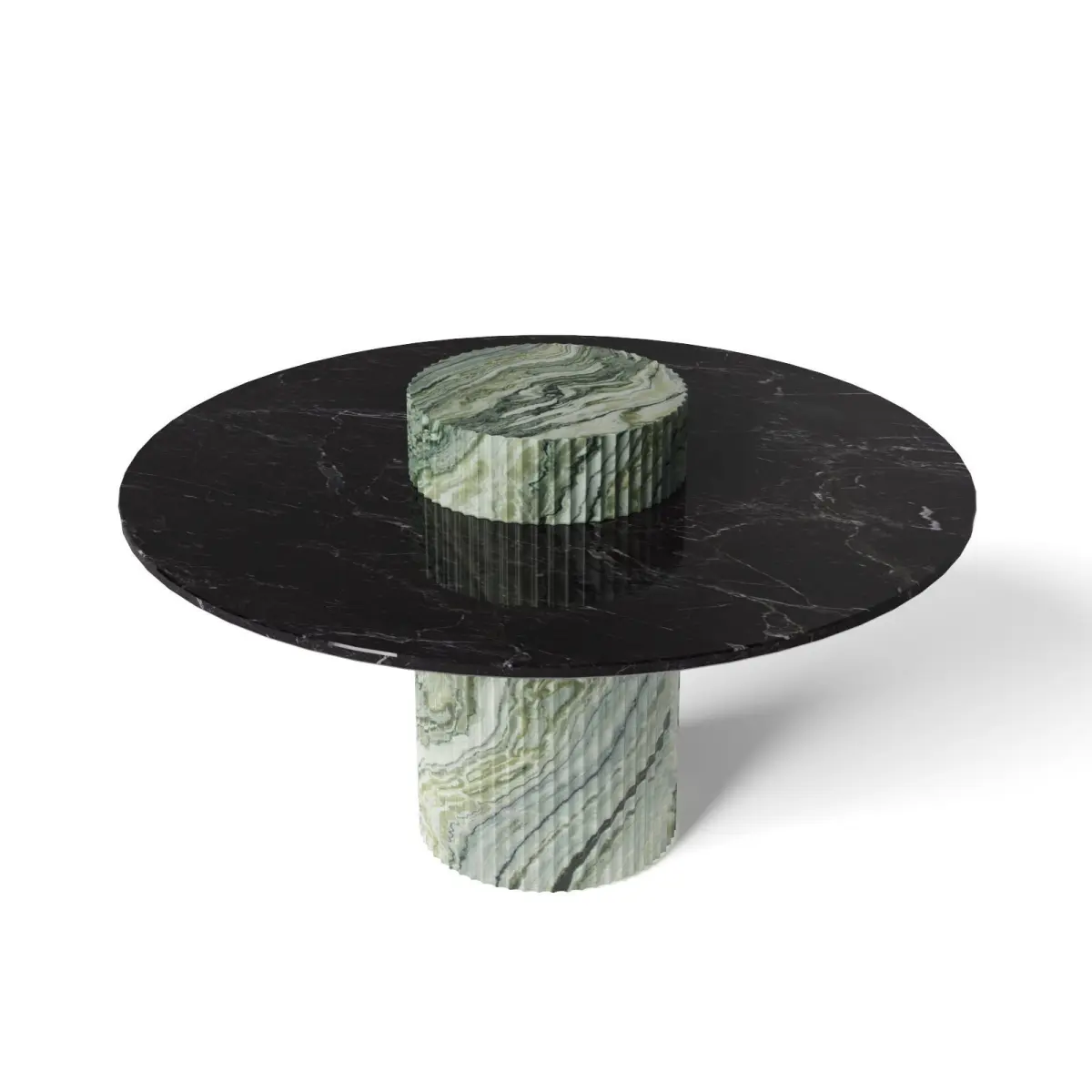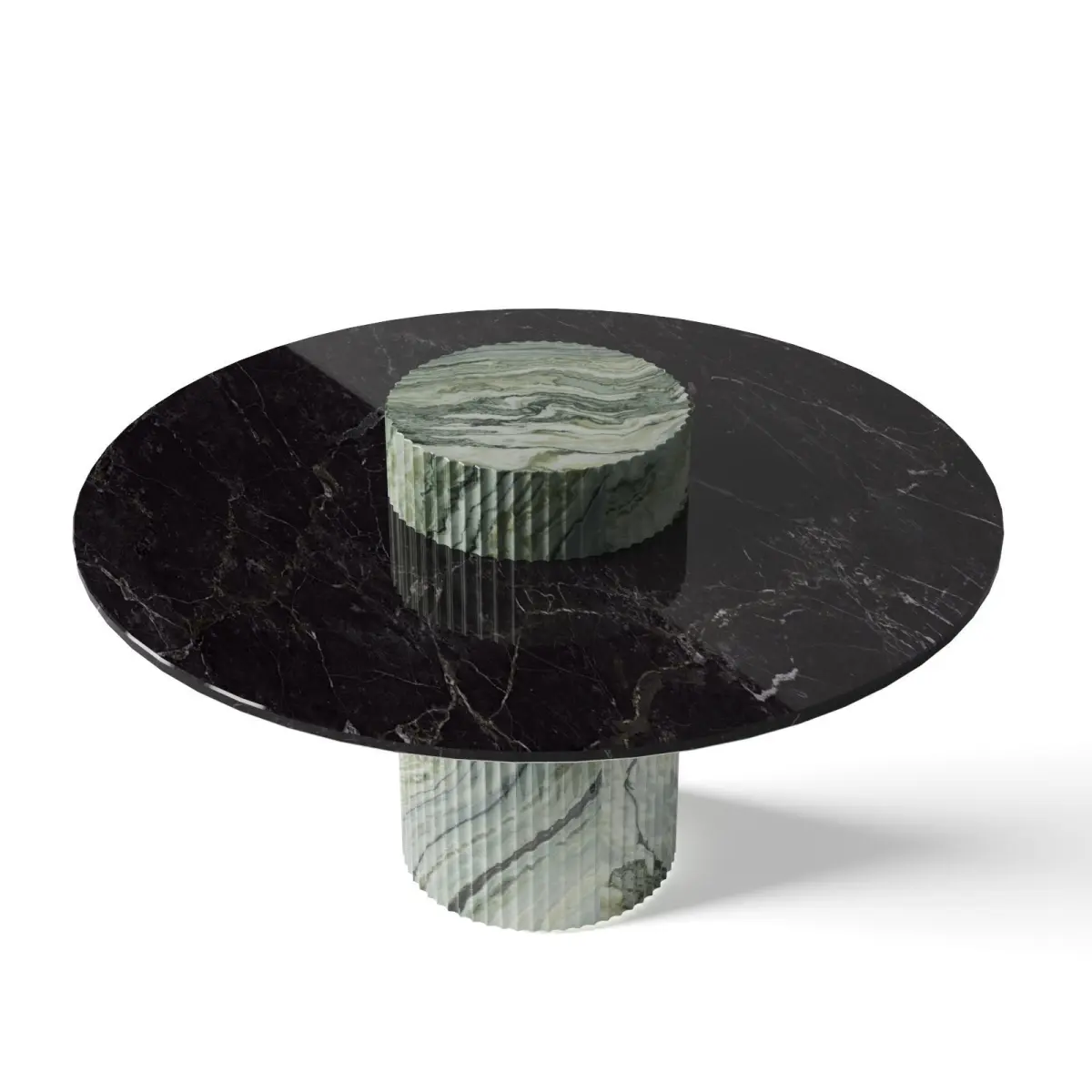 Limited edition of 8 piecesTabletop in Nero Marquinia marbleBase in Verde Luana Marble