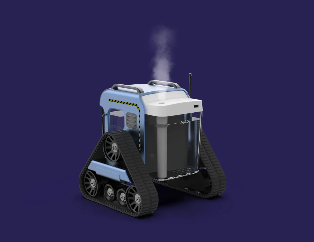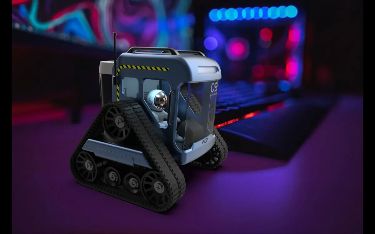 This design is a toy-looking humidifier, fill water in the transparent tank, the cute driver submerged in the cockpit environment, turn on the power button, fog could be exhausted from top side, as if the crawler engine is started.