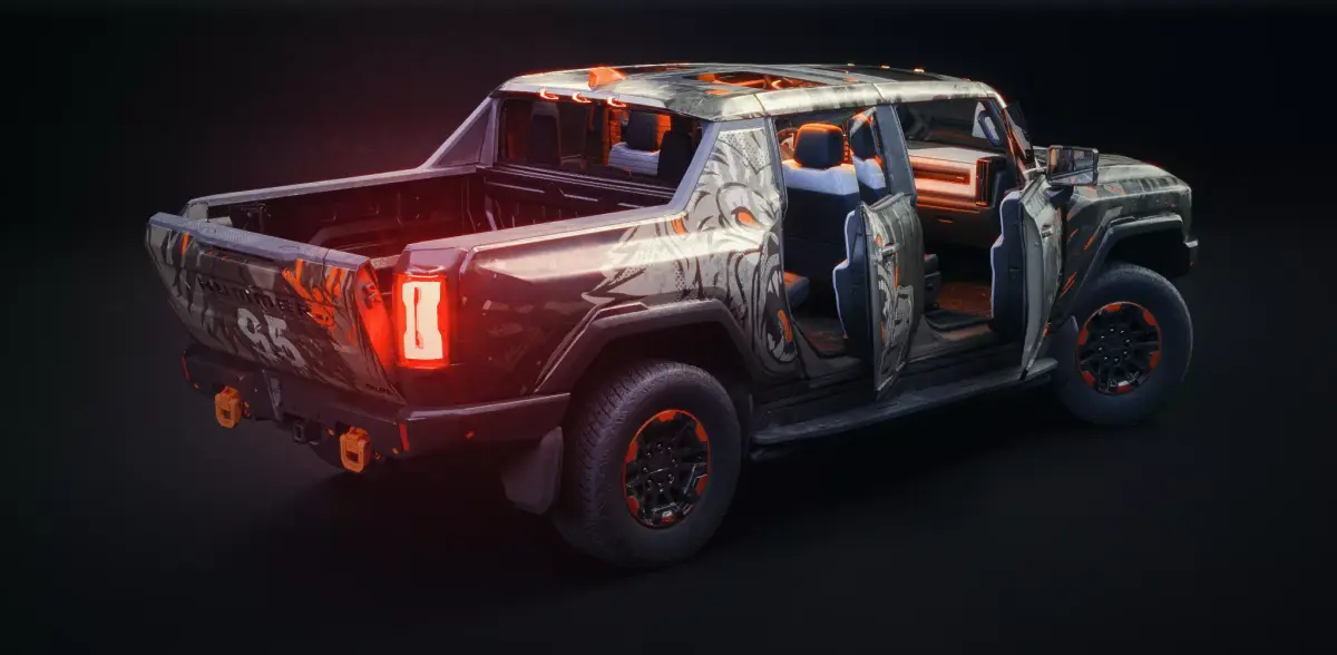 This version of the HUMMER EV features an intense, off-road inspired “Inferno Beast” livery, mixing orange-black graphics with a rugged tactical aesthetic. It’s fully optimized for animation and real-time work, featuring a clean Blender rig and well-organized texture sets.