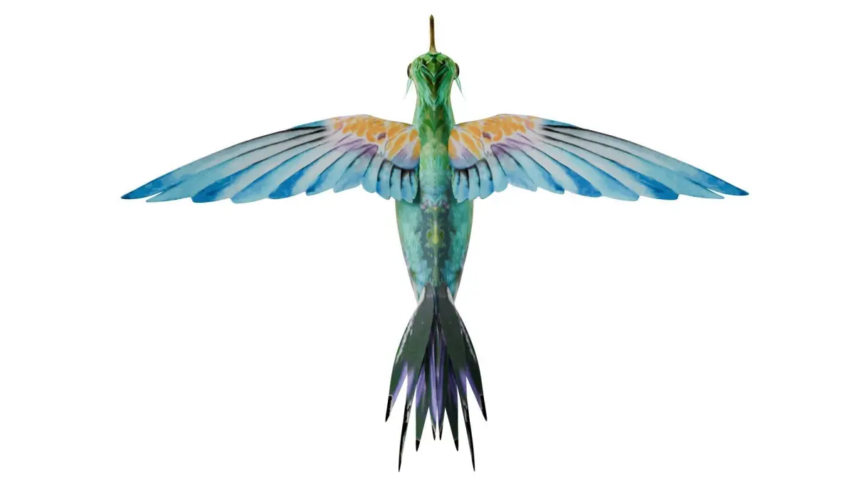 This Humming Bird is a high quality model that will enhance detail and realism to your rendering projects. The model has a fully textured design that allows for close-up renders, and was originally modeled in Blender and rendered with KeyShot.