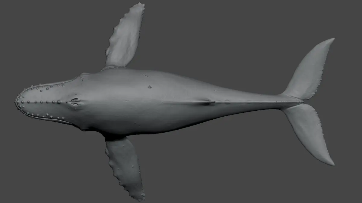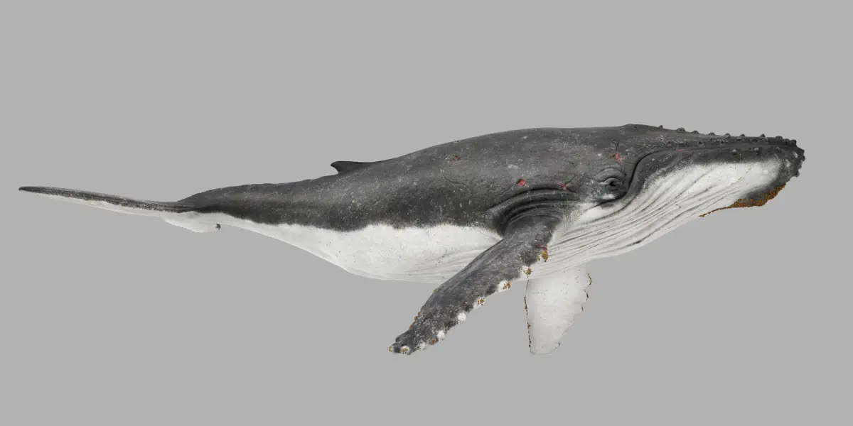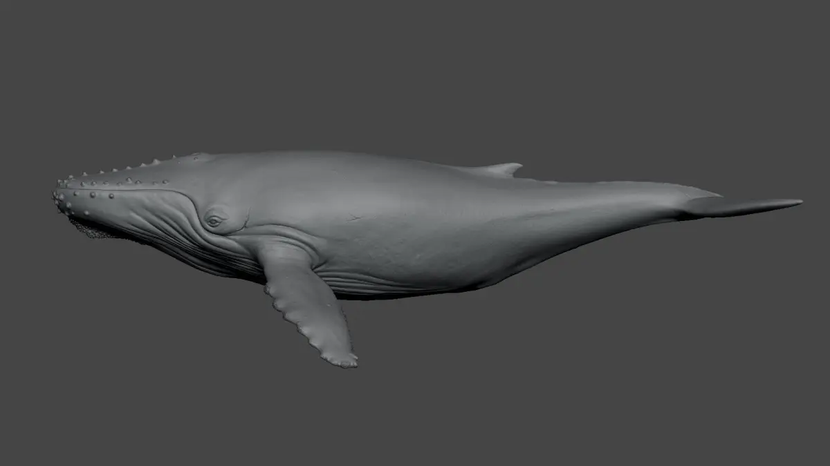 Highly detailed model with barnacles, skin texture, and realistic anatomy