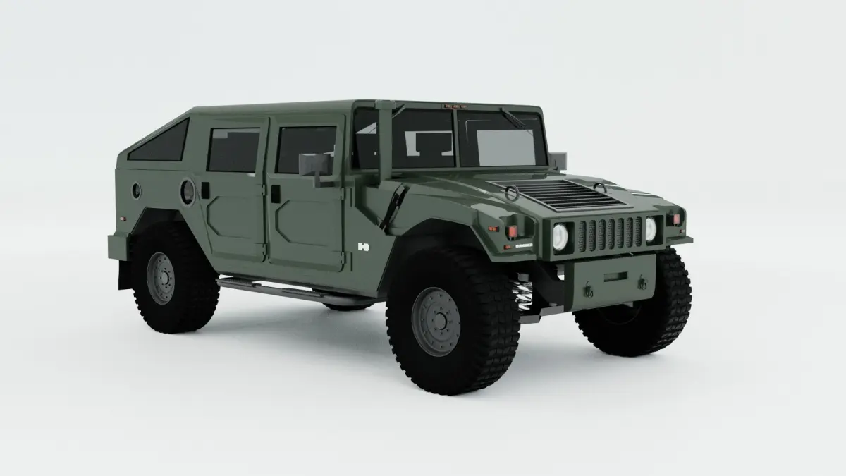 High-quality 3D model of the exterior of the military version of the car HUMMER H1 1993 (HUMVEE). Made on open source renders.** Ready to separate for a smoother finish**. The geometry is not triangulated. Does not include interior. Included is a high quality tire model with high detail. There are procedural materials in the blender file. Each piece of geometry is grouped by material. The model is ready to be rendered in Cycles.