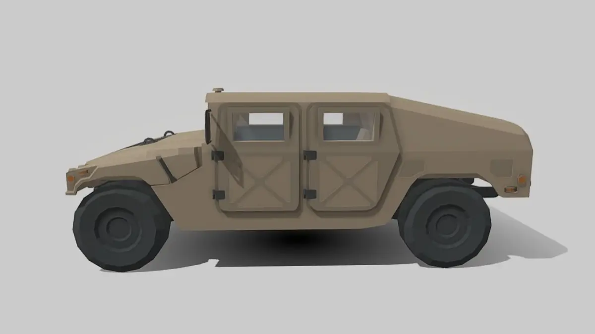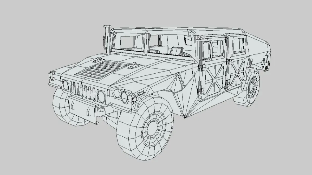 This is a low poly 3D model of the Humvee vehicle. It was modeled and prepared for low-poly style renderings and game development.