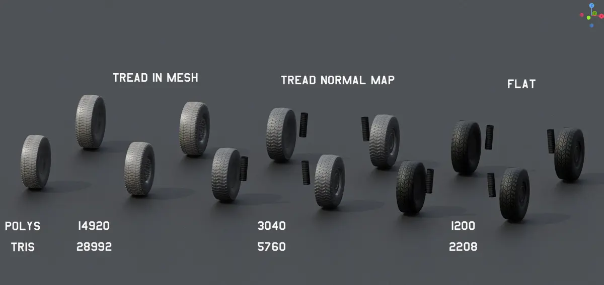 Medium Poly model with wheels 34168 polygons, 63956 triangleswithout wheels 19248 polygons , 34964 triangleswith wheels + crows 48492 polygons, 88764 triangles