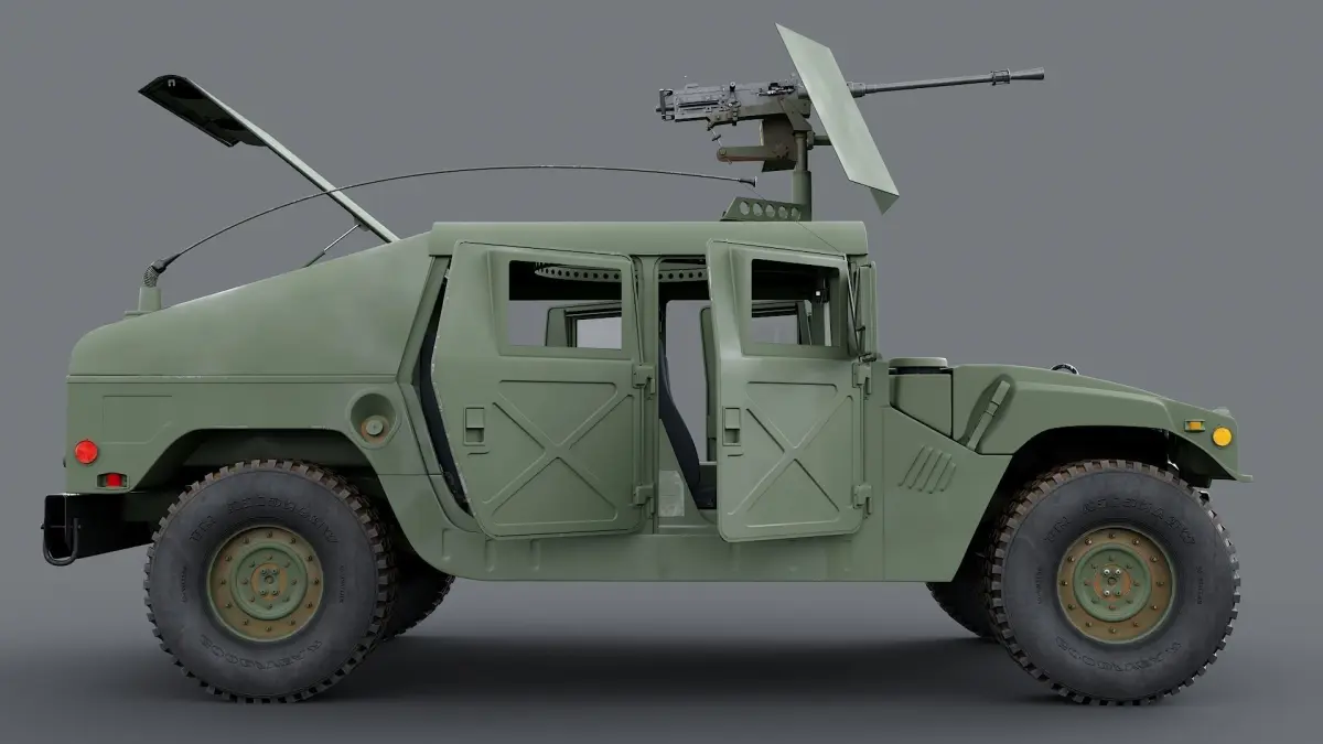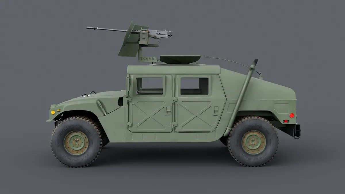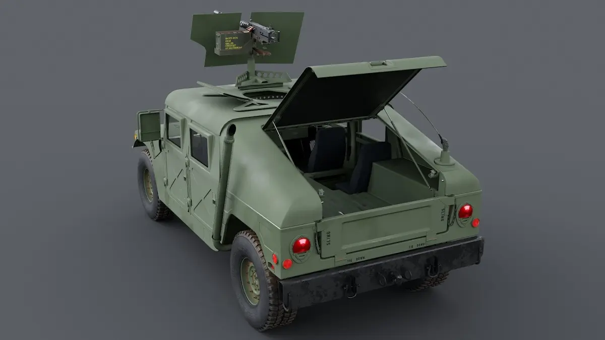 This is a military Humvee M998 M1025 Weapons Carrier Slant Back. Fully Designed and The model has a fully textured, detailed design that allows close-up rendering and animation. All proportions were observed, created according to drawings and photos. functional doors, hood, trunk, upper airlock of the machine gunner, door glass all have their own model and can be opened and interacted with. Painted textures in Substaince painter. Resolution of all textures High resolution and realistic, fully detailed and textured Humvee M998. Fully detailed interior with instrument panel. Detailed enough for close-up renders. Comes with detailed textures.Elaborate suspension and other detailed details