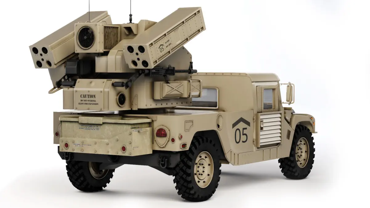 M1097 Avenger - American self-propelled short-range anti-aircraft missile system, located on the chassis of an HMMWV all-terrain vehicle. The complex was developed by the American company Boeing Aerospace Company together with General Electric . The interior, the dashboard has been worked out. Can be used for low angle views.