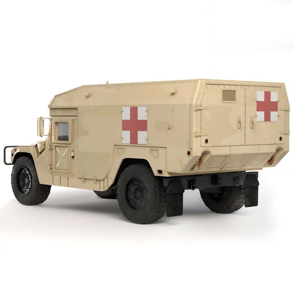 A truck designed to transport sick or wounded personnel. If the body type is "Panel" or "Van", it is usually equipped with rear loading door(s). The M996 and M996A1 were the Mini-Ambulance configuration of the HMMWV family. The vehicles were equipped with basic armor and used to transport casualties from the battlefield to the medical aid stations. The M996 types could transport up to 2 litter patients, 6 ambulatory patients or a combination of litter and ambulatory patients.