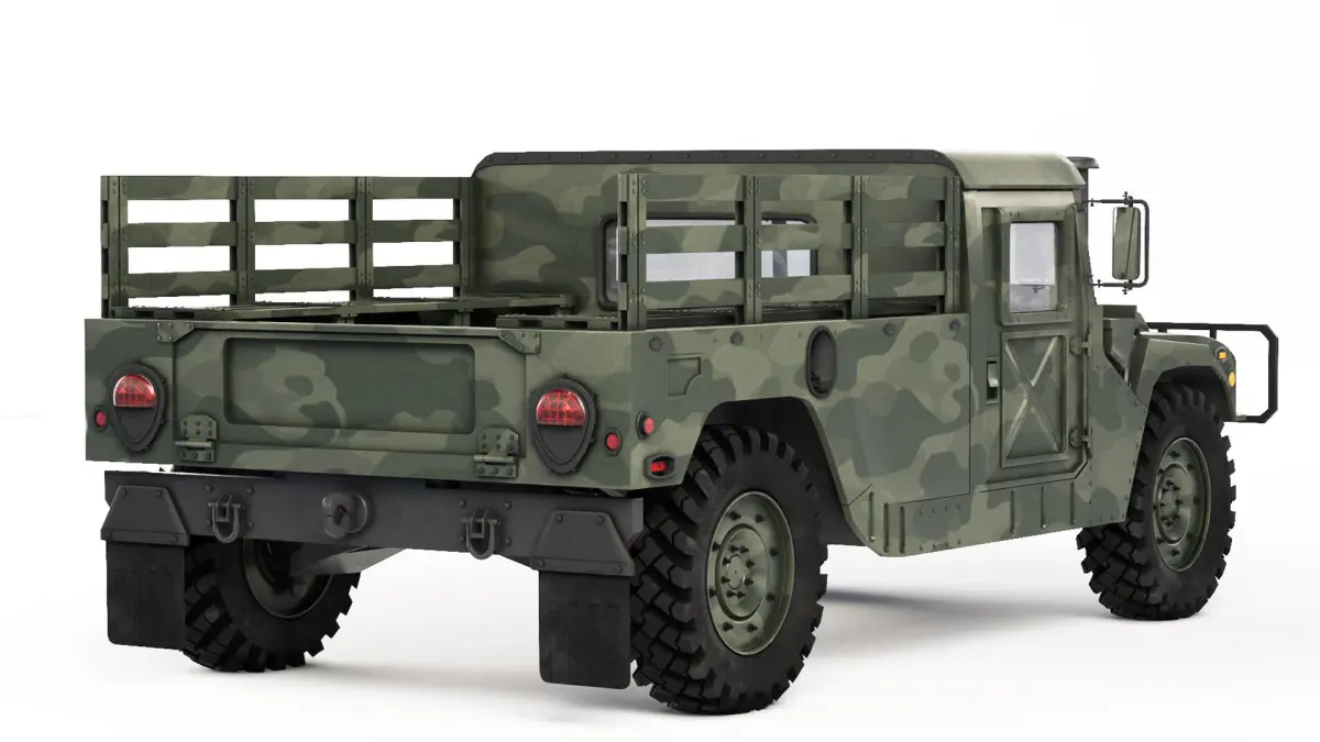 Detailed model of the American Humvee Military M-998 - basic chassis (open cargo vehicle). The interior, the dashboard has been worked out. Can be used for low angle views.