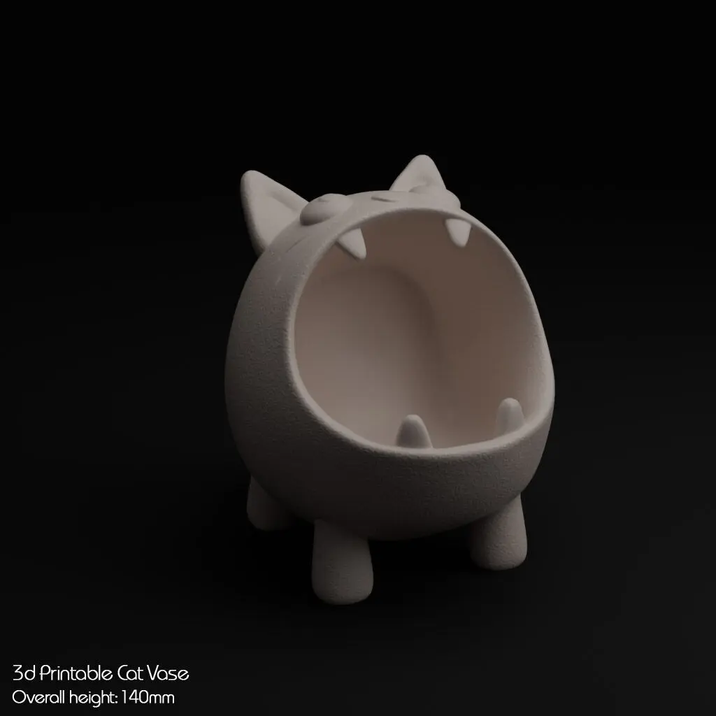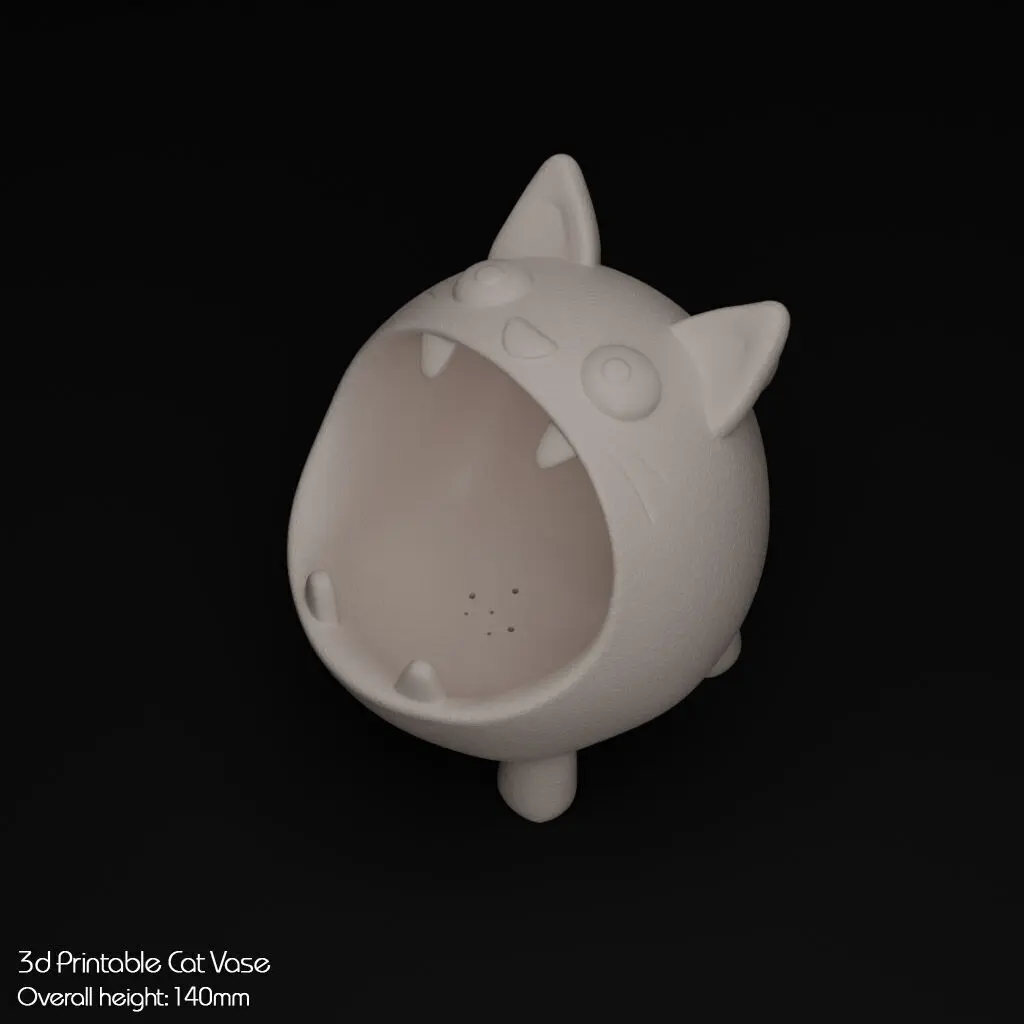 Bring some whimsy to your decor with this adorable cat-shaped vase, perfect for holding succulents or small plants. The vase features a playful design with big eyes, cat ears, and a wide open mouth, making it a fun and charming piece for any space.