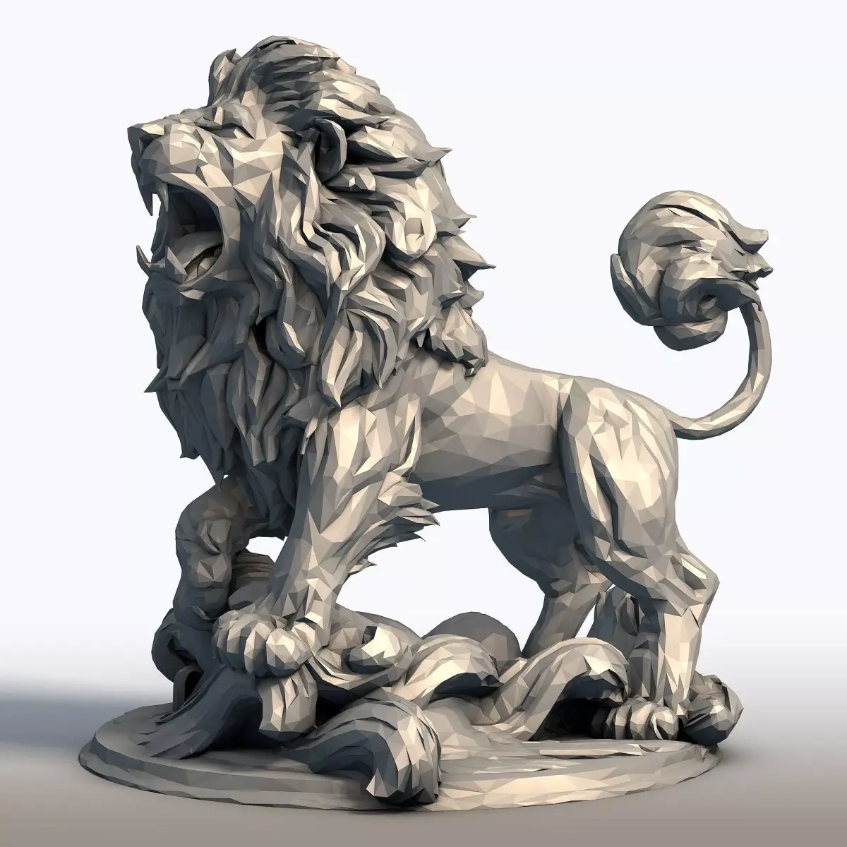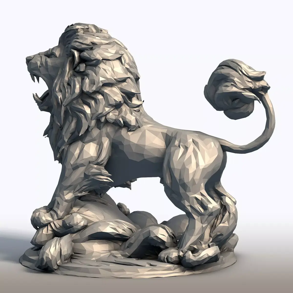 Hungry Lion Low Poly Sculpture - 3D Model