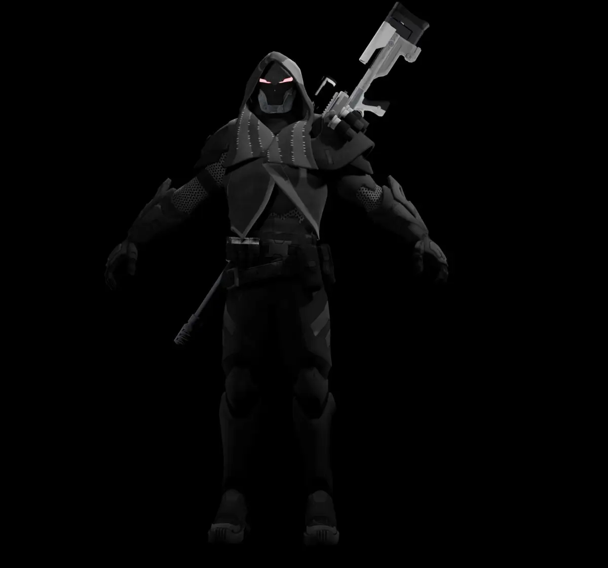 3D character Sniper and sci fi cyberpunkDesigned for games and moviesfanartready game and rigged for animation3D print model .formats: blend fbx obj stl.worked on blender.for more model visit my account.