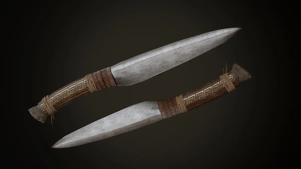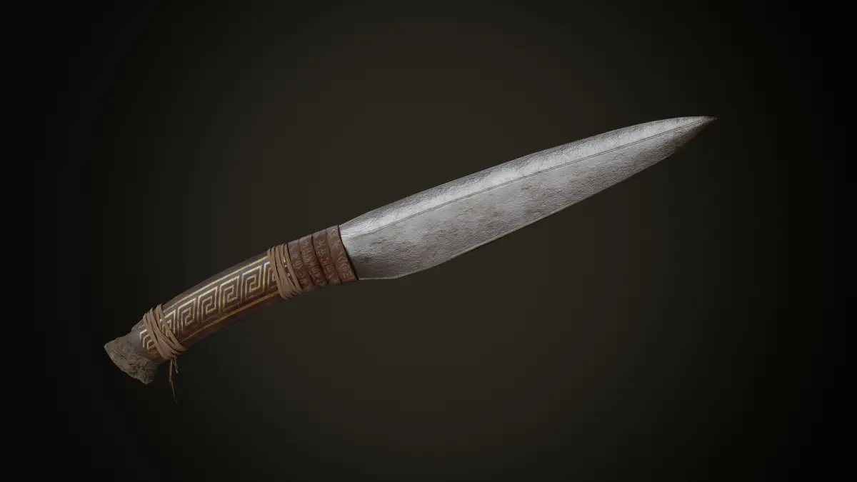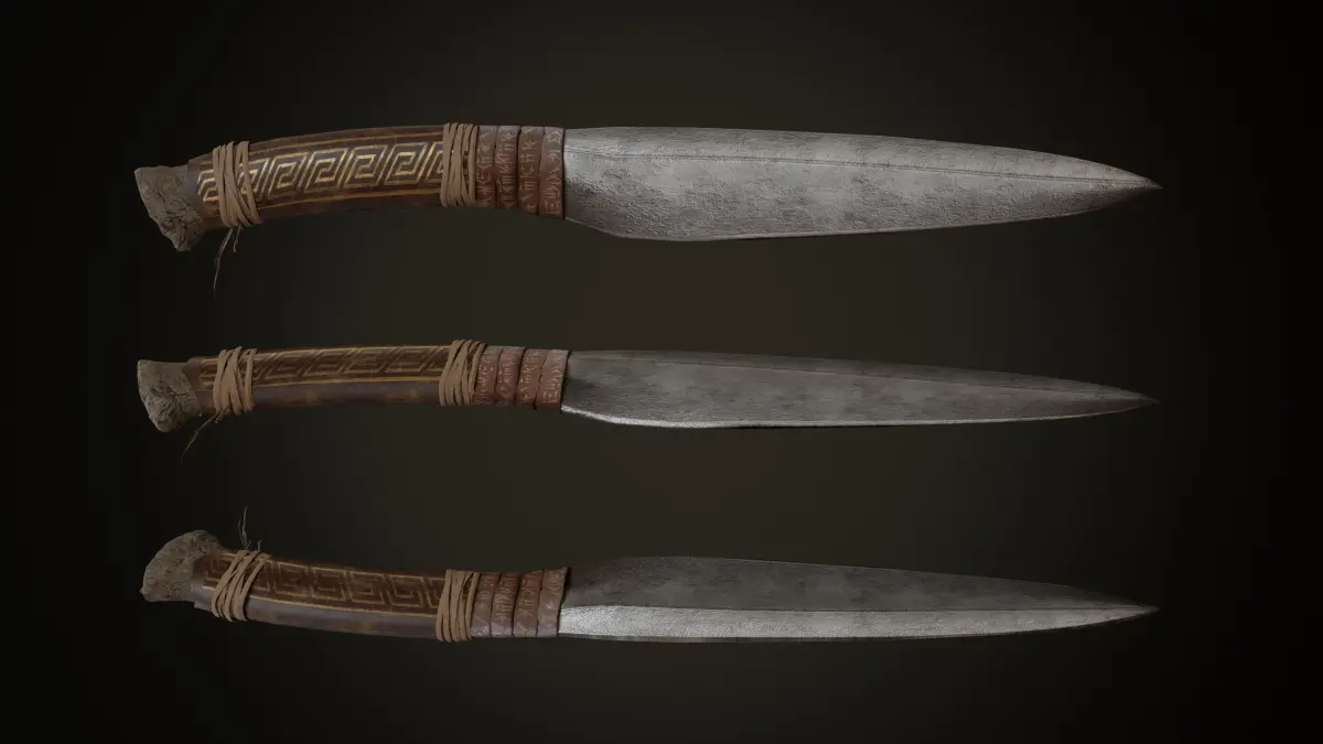 The 3D model of a knife with extremely high quality for use in game projects and... This model has high quality textures and is made of wooden handle parts with ancient designs and leather straps and metal blade. All of them together have created this style and quality model, I hope you enjoy it