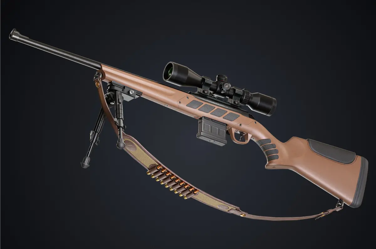 Hunting Rifle GameReady Model with Attachments Created in Blender 3.4.1