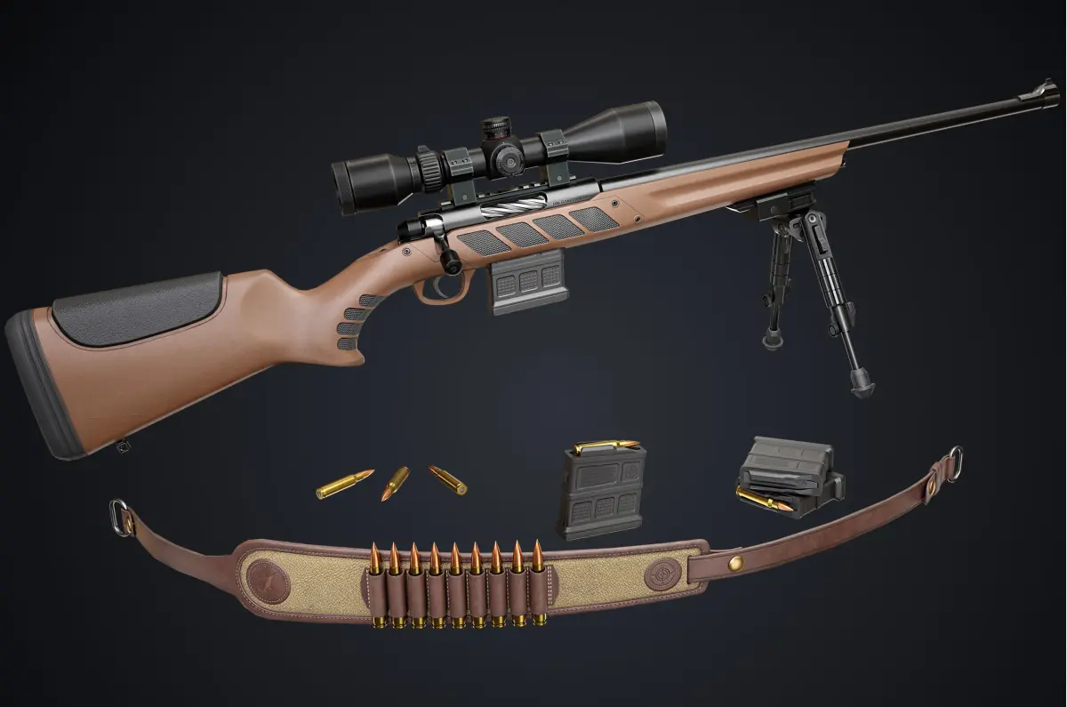 Textures:4K Textures (Four Sets,-Scope Textures ,-Sling textures,-Bipod and Rifle Textures(with Magazine and Bullets) , png format )