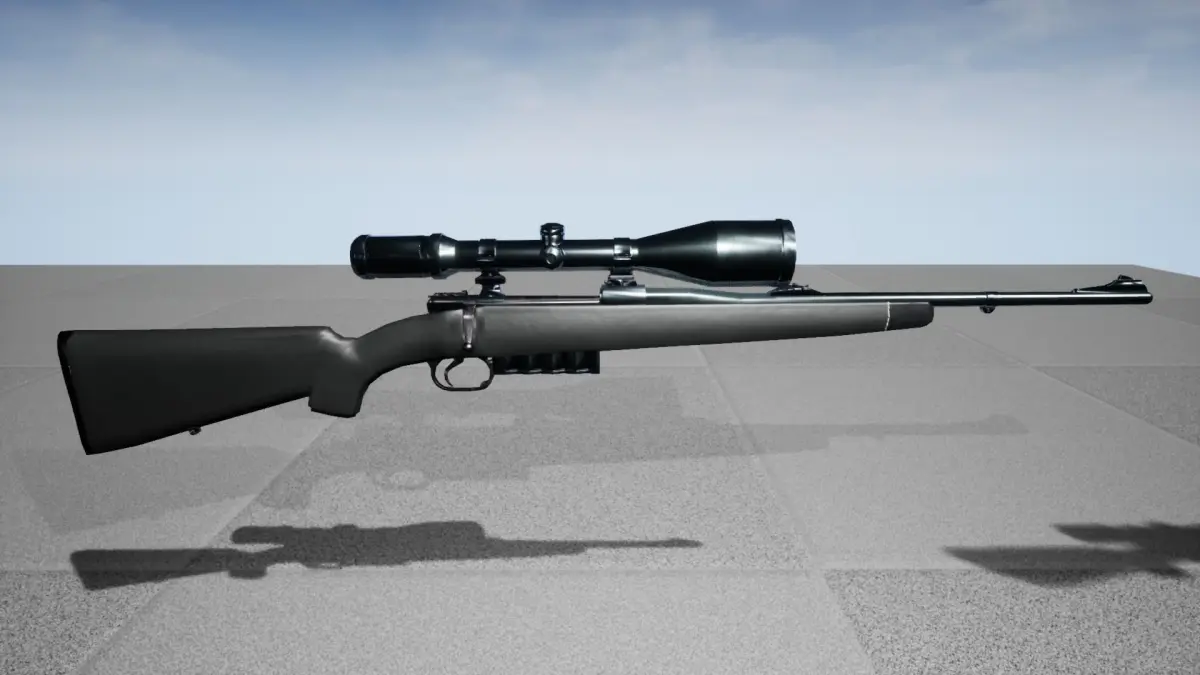 Technical Details Features: 1 rigged hunting rifle Rifle comes with five custom materials Rifle scope has its own material slot so making a zooming scope is easier Two rifle animations(fire and reload) Unused bullet mesh with custom material Used bullet mesh with custom material