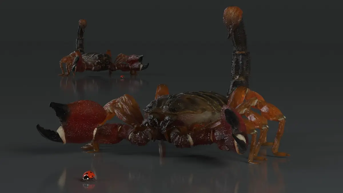 Hunting Scorpion Fur Animated Rigged for Cinema 4D is fully rigged and is ready to be animated in Cinema 4D. You can easily position it the way you need or animate it the way your project requires. See the screenshots to get an idea of how rigging works. The pose of the model on the render images is an example and can be recreated using rig, it is not initially included into the product.