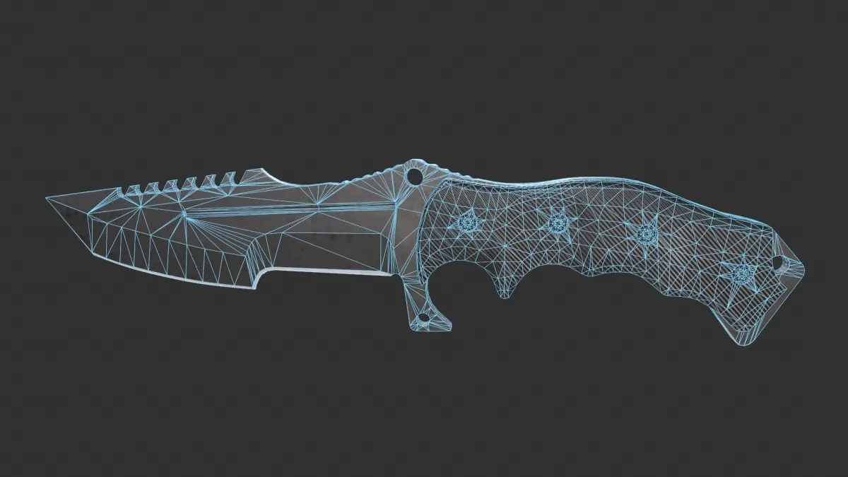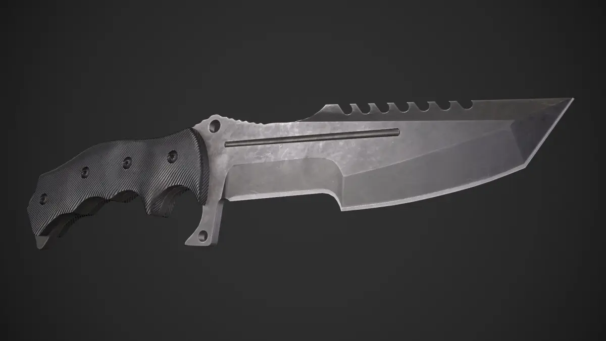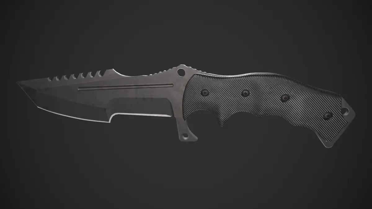 Game-ready Huntsman Tactical Knife asset, with PBR textures included in the files. This has 2860 polys (4702 tris) and 2608 vertices.