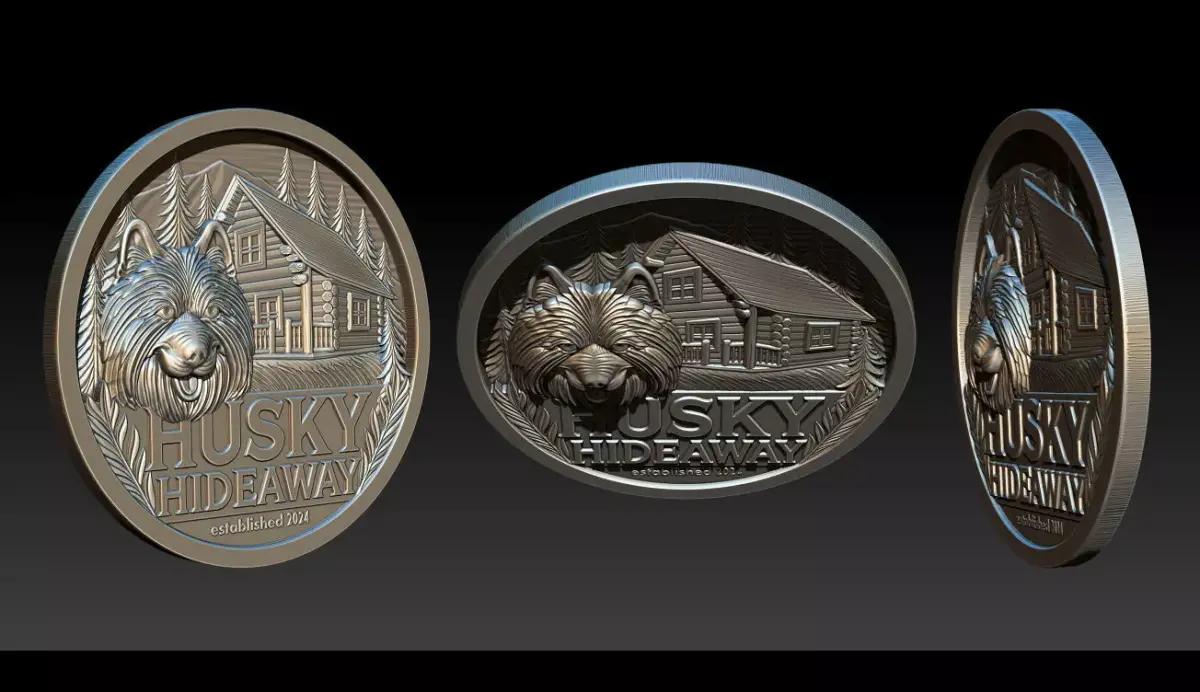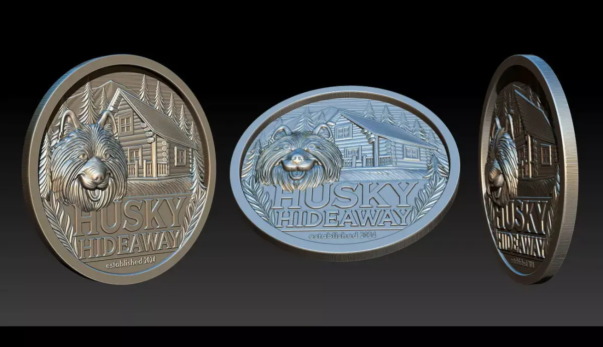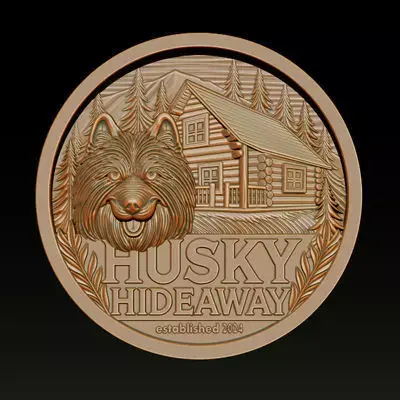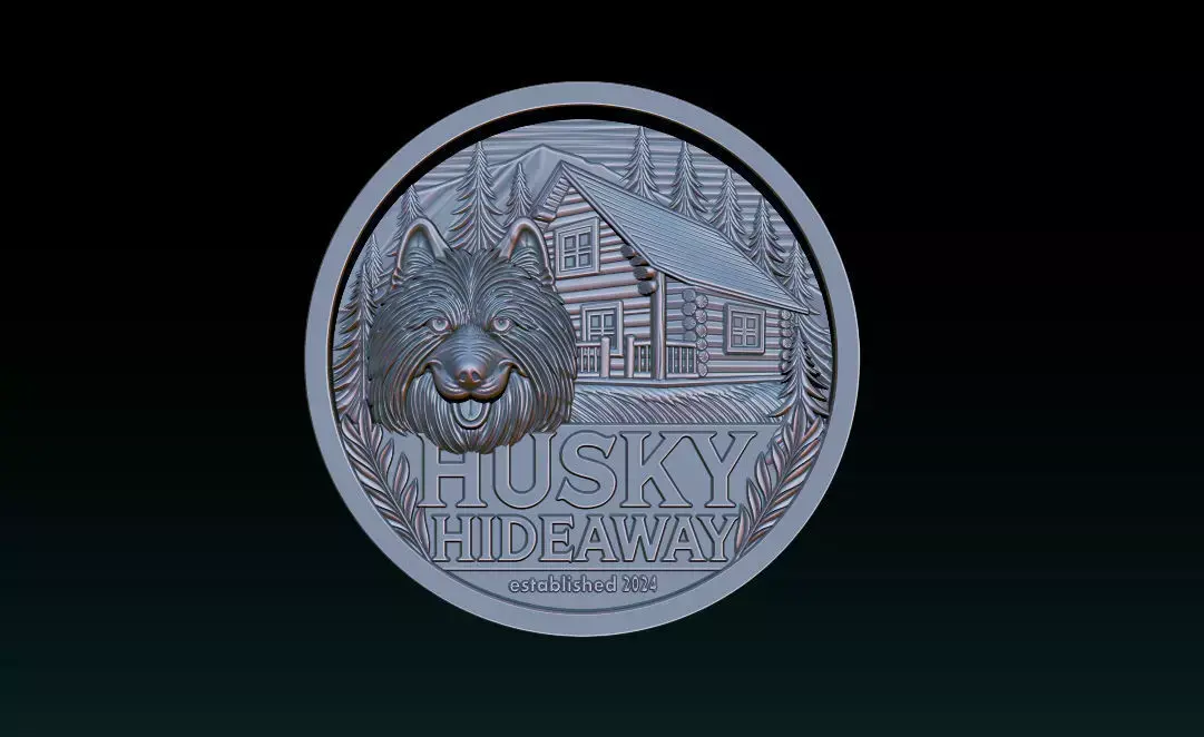 Husky Hideaway 2.5D Bas Relief – STL | OBJ | ZTL – CNC, 3D Print, Laser Engraving File