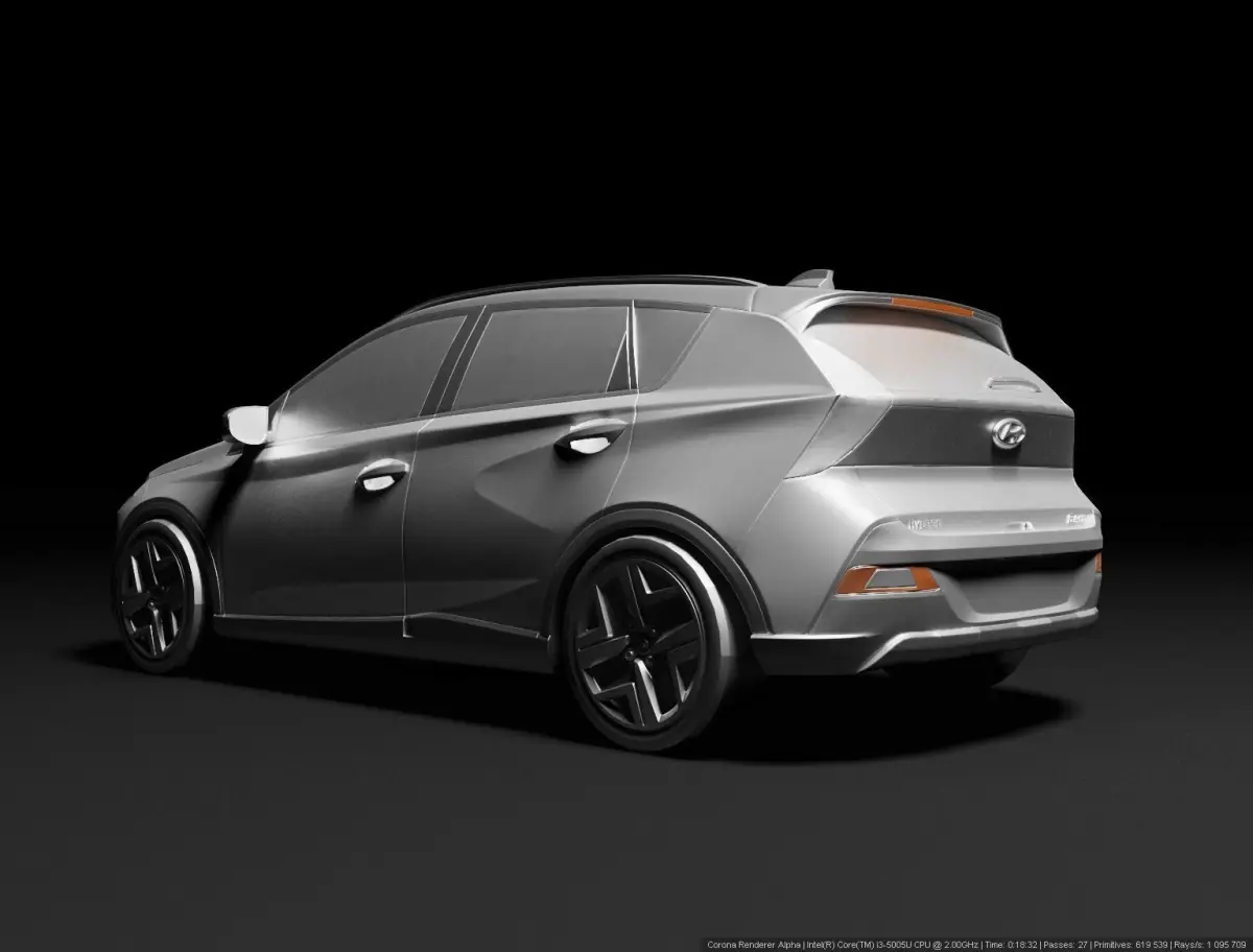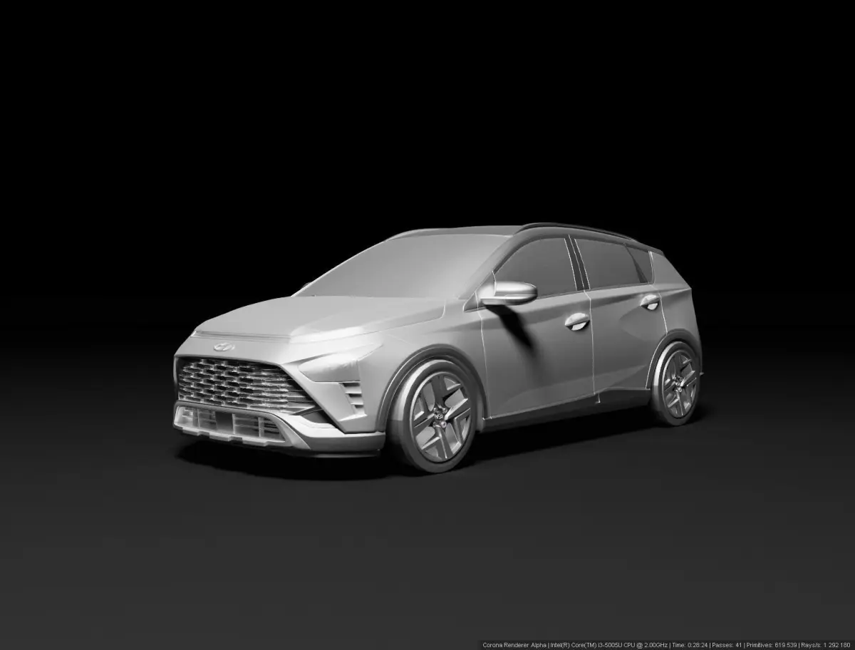 A simple model of the Korean Hyundai Bayon hatchback. There are no materials and textures in the model, the optics are completely restored, closed with frosted glasses. Inside is a simple unpresentable model of the cabin with a steering wheel, seats. There is no chassis and engine model