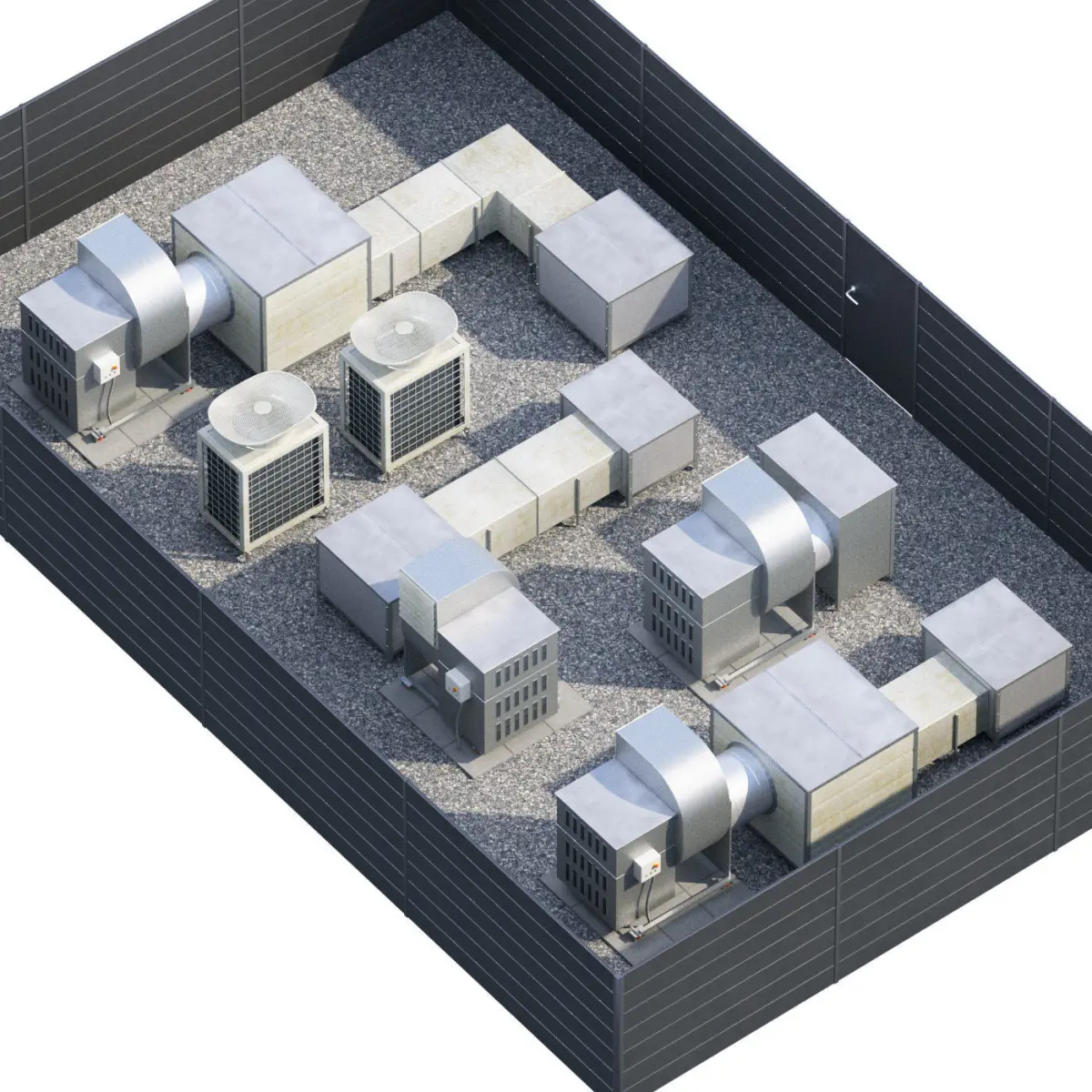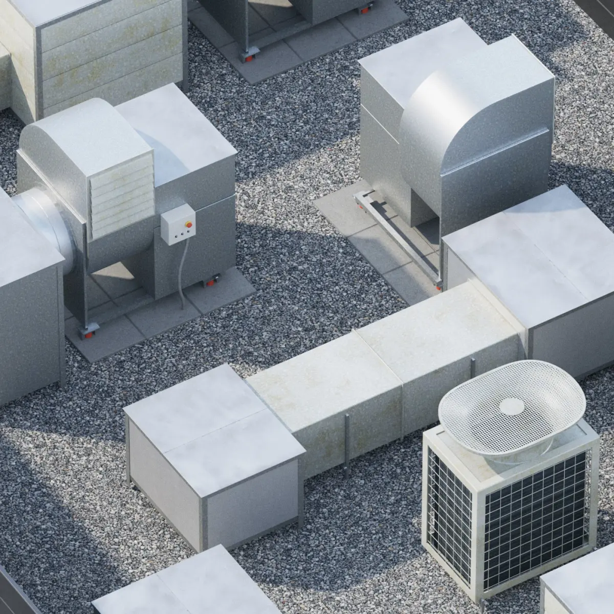Model of HVAC Roof technologies.Modeled by photo, suitable for aerial visualizations.The main intense was to keep the smallest amount of polygons, for nice renders.