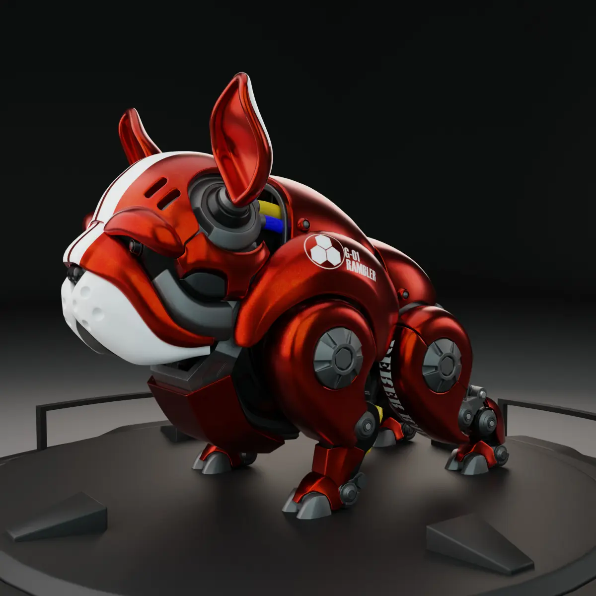 This is my 3D Model of HWJ Rambler is a cyberpunk-inspired mechanical bulldog, designed as a futuristic art toy with a bold, high-tech aesthetic. Featuring sleek armor plating, exposed mechanical joints, and cybernetic details, this robotic beast embodies both power and precision.With two distinct color variations, the model offers versatility for collectors, 3D printing, animations, or game assets. Whether as a display piece or part of a cyberpunk universe, the HWJ Rambler merges technology and canine strength into a striking mechanical masterpiece.