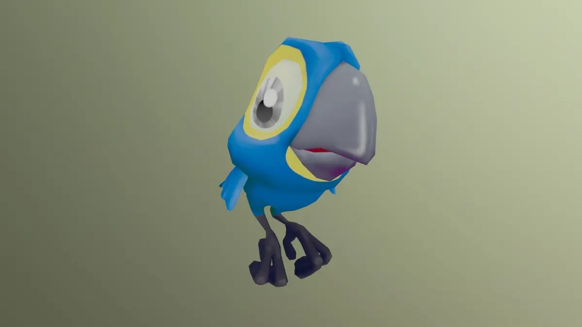 Animated low-poly 3D model of Hyacint Macaw in cartoon style for video games, mobile applications and other.