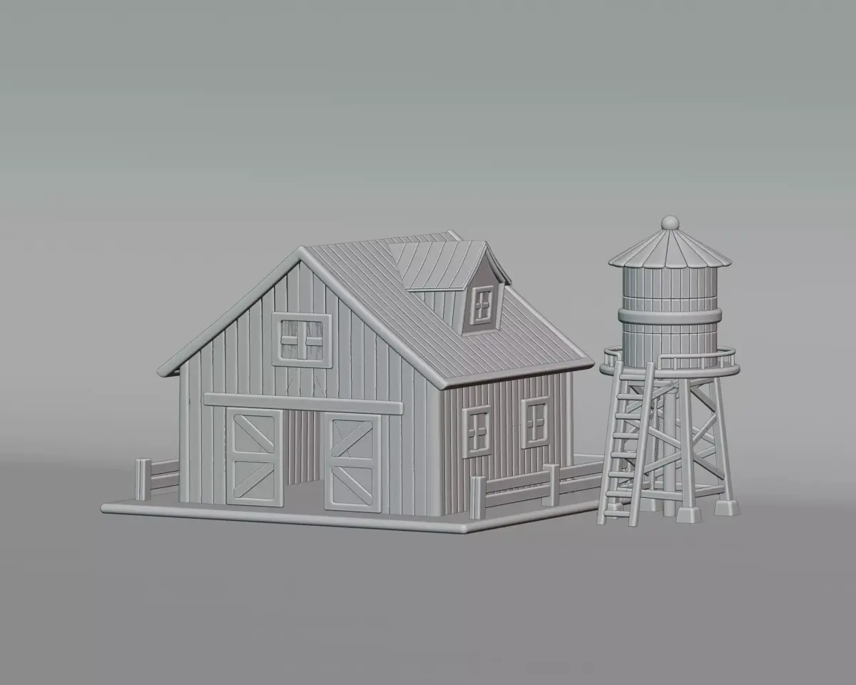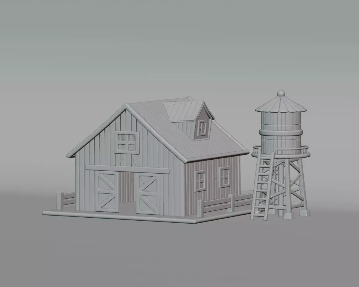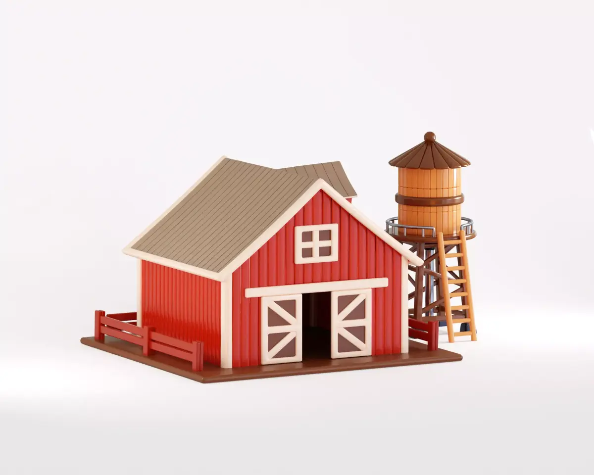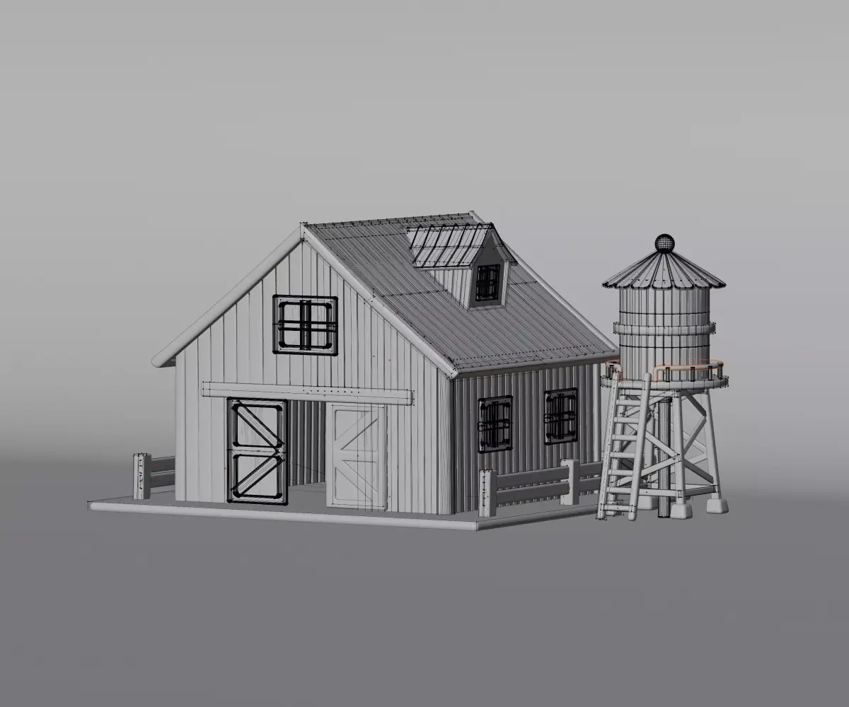 Highly detailed model of a modern Hybrid Barn with Water Tank.