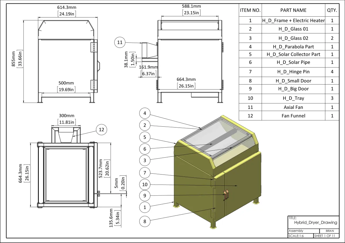 My Final Year Project (Trial 1). A dryer which utilizes both solar and electric energies with some other features. Pretty Interesting period for me!! Highlight of my Engineering Course, Design and SolidWorks.