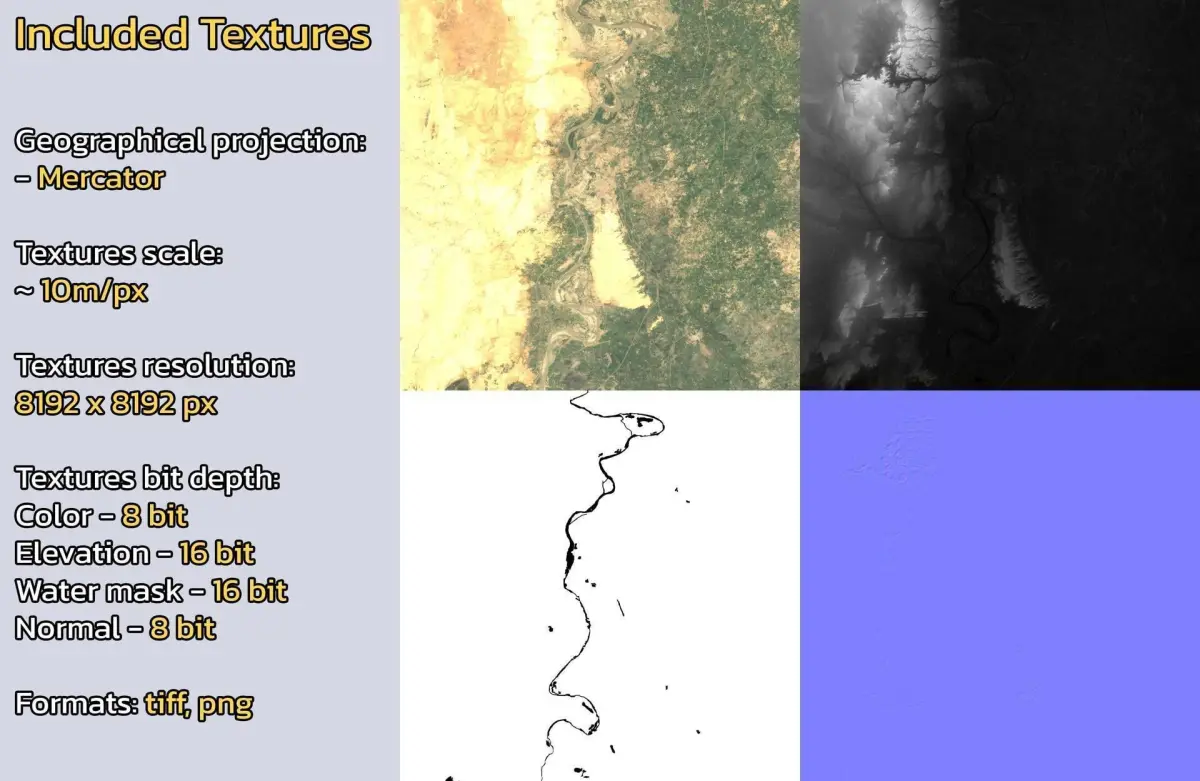 - Textures resolution: ~10m/px
