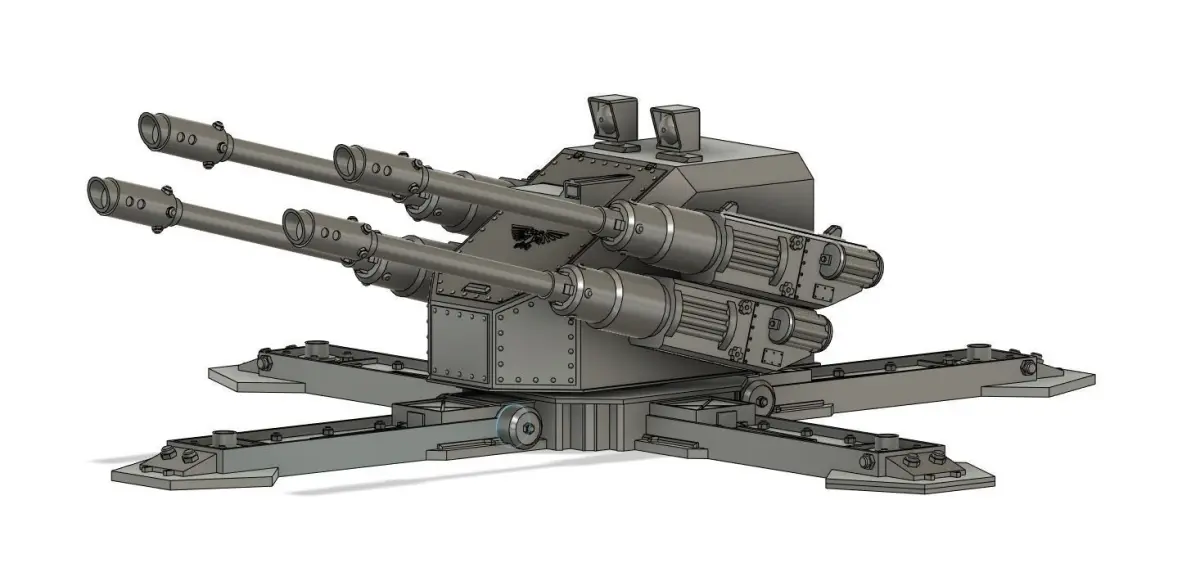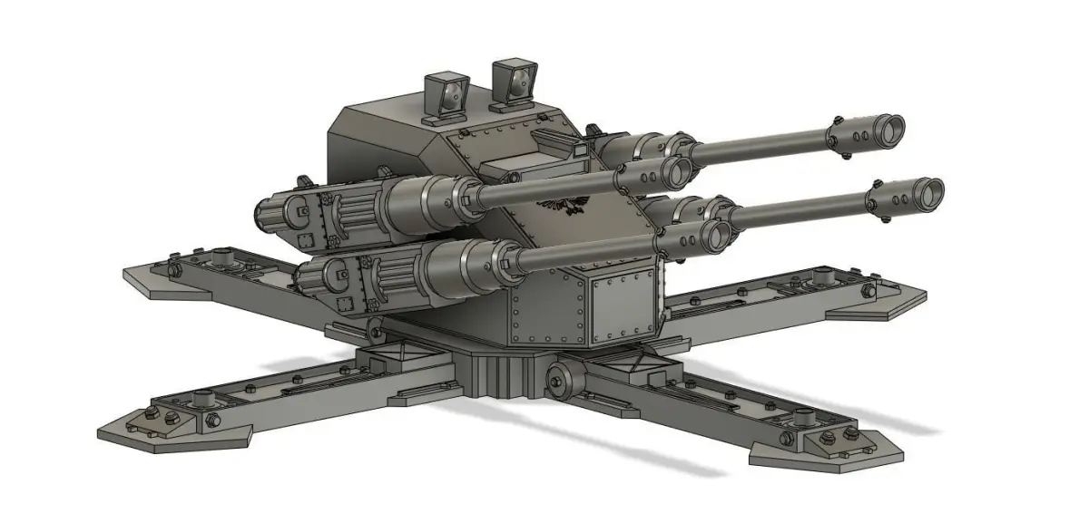 An Imperial Of Man Weapons Platform, also known as the Hydra Weapons Platform. The platform is usually used in the Imperial Guard army and is a stationary gun platform with autocannons attached to both sides.