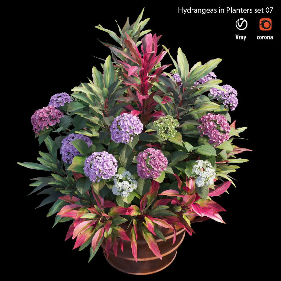 Hydrangea in planters set 07 use software : 3dsmax ( corona and vray ) - sketchup 2008 - Cinema 4D - Blender - maya 2016