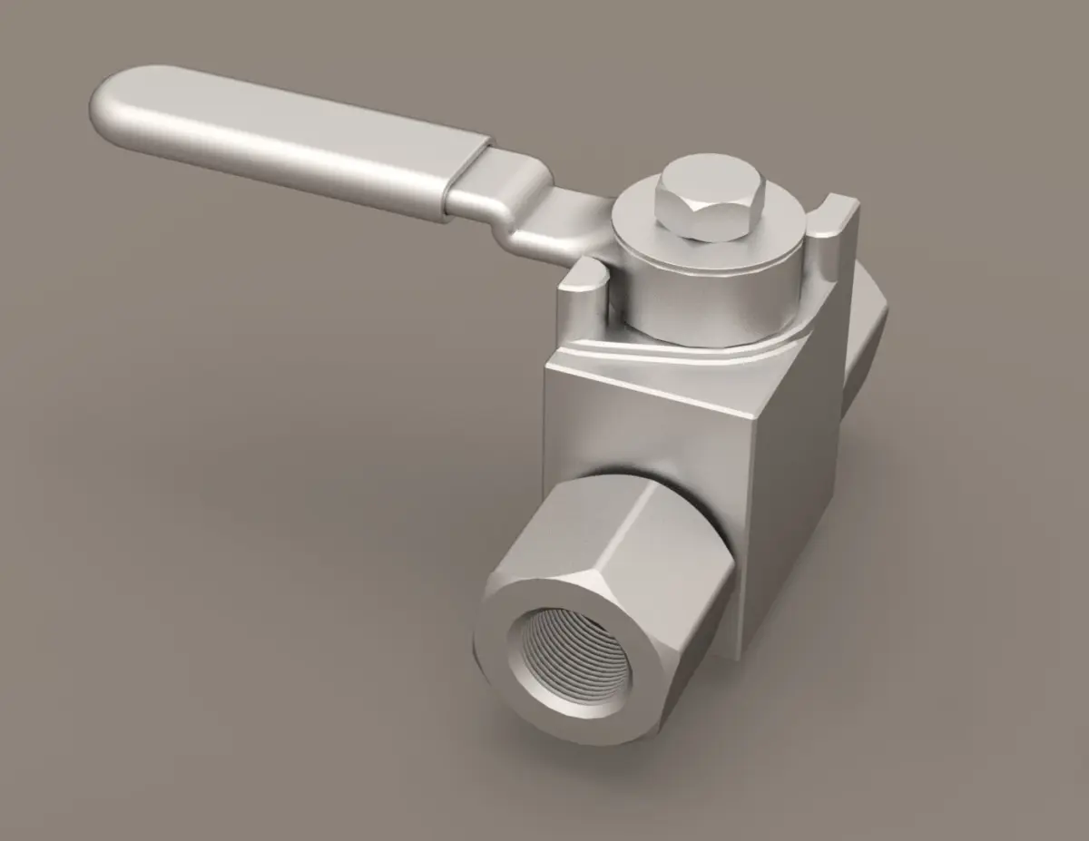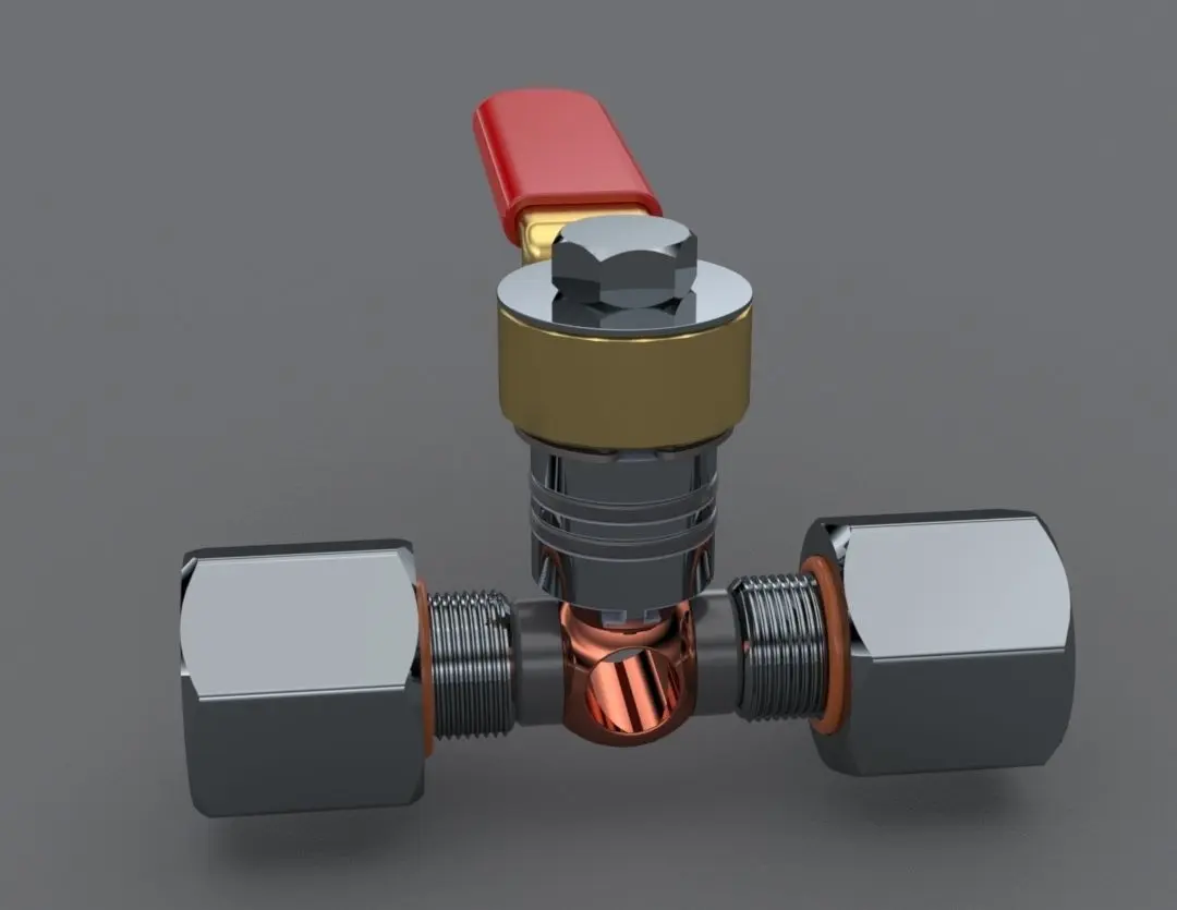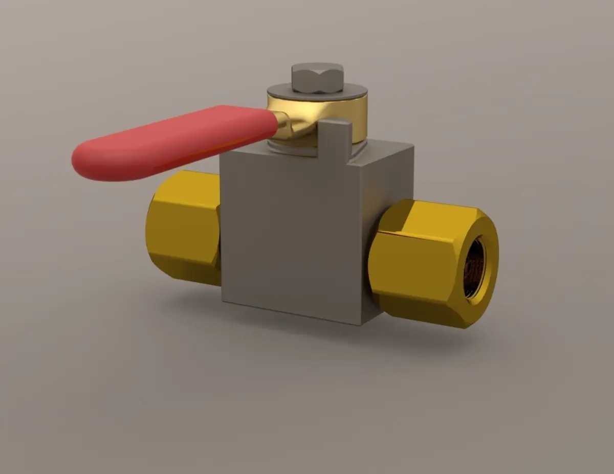 This model is a simple construction for a ball valve connected with adapters for hydraulic utilization ID 10 mm