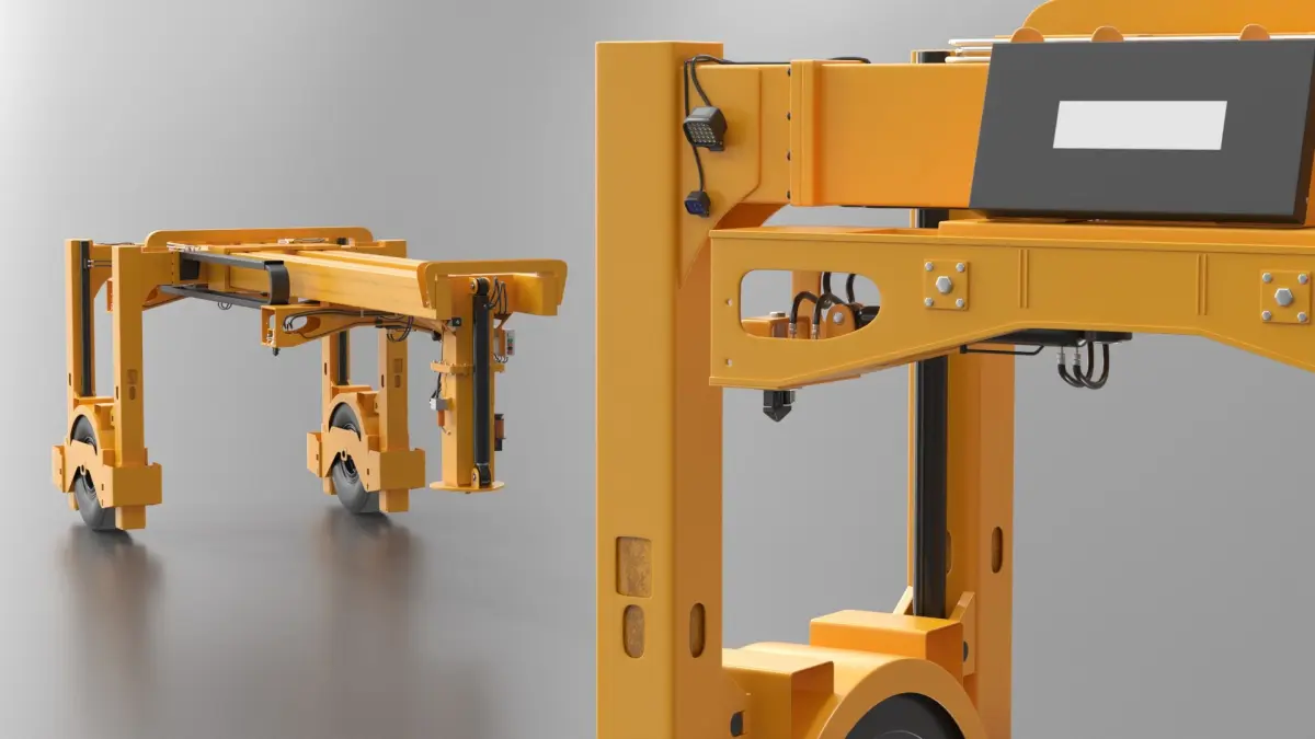 For container logistics training, industrial vehicle design, intermodal freight handling, port operations, cargo transport simulations, transport engineering, logistics education, equipment demonstrations, commercial fleet showcases, academic research, vocational training, freight yard management, and mechanical design evaluation.
