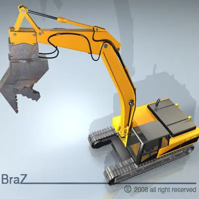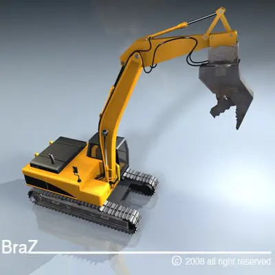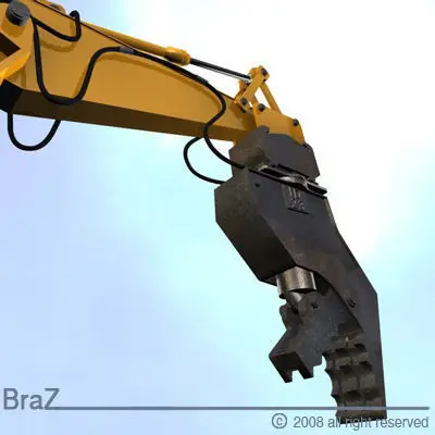 Model of Hydraulic Excavators with demolition bucketRendered with C4D.PolygonalPolygons 58887Vertices 56624Exported formats 3ds, dxf, obj will require some texture adjustments and should be considered geometry only.