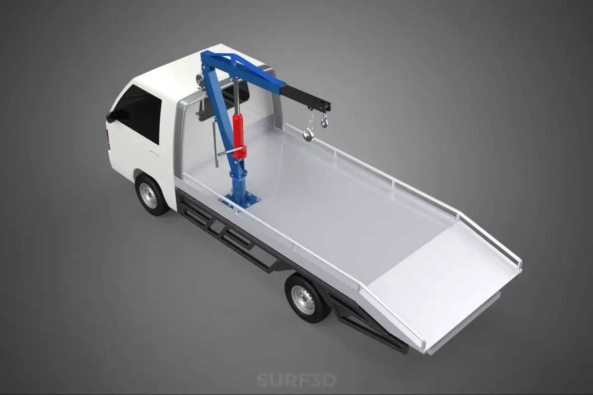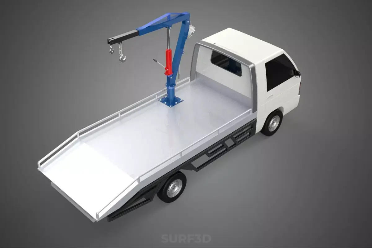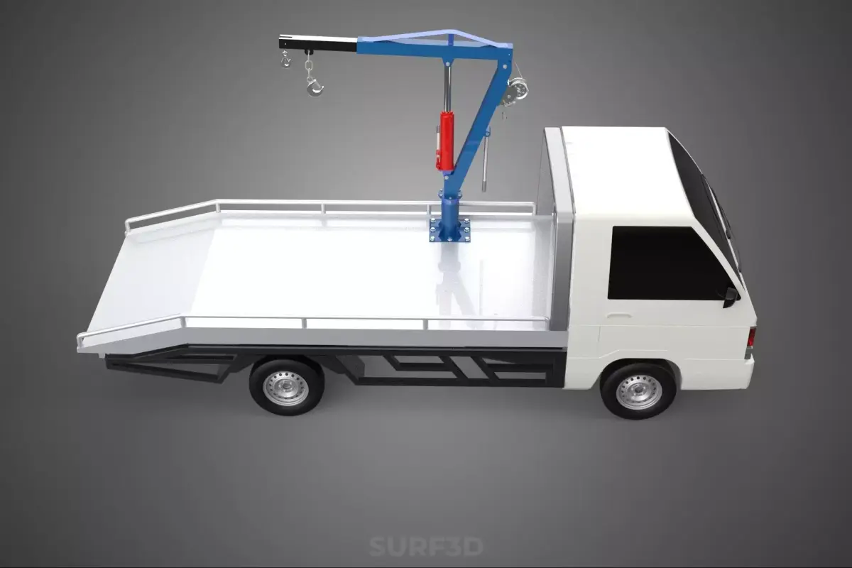 KEYWORDS: Hydraulic Jack Crane, Hand Crank Winch, Towing Truck, Pickup Truck, Mobile Crane, Vehicle Mounted Crane, Recovery Vehicle, Utility Truck, Lifting Equipment, Material Handling, Field Service, Manual Hydraulic, Boom Crane, Winch Hook, Load Handling, On-site Operations, Portable Crane, Davit Crane, Light Duty Crane, Self-contained System, Outriggers, Vehicle Stability, Mechanical Advantage, Towing Operations, Equipment Loading, Automotive Repair, Small Construction, Versatile Lifting, Manual Operation, Mobile Workstation