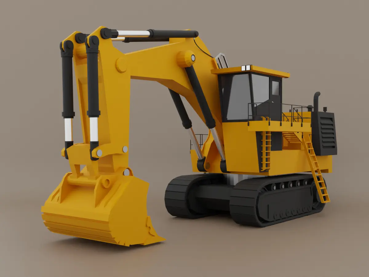 Low-poly model of hydraulic mining shovel heavy construction vehicle