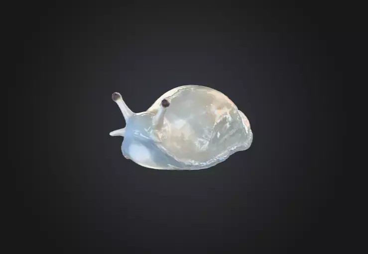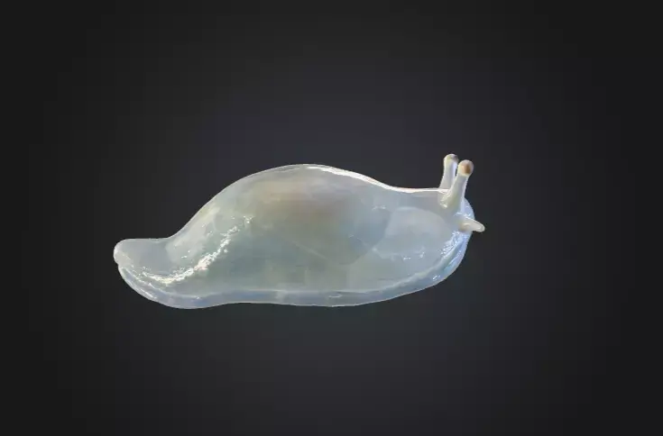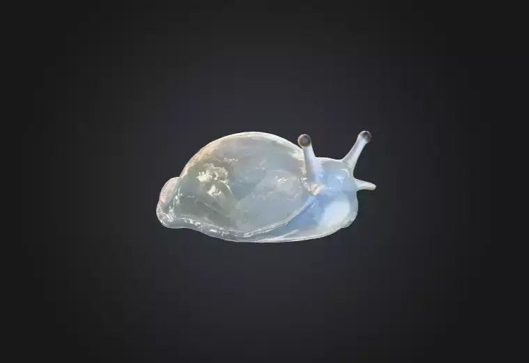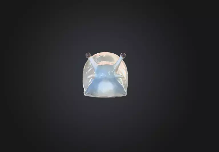 The Hydro Slug is a mesmerizing 3D creature model inspired by deep-sea bioluminescent organisms and terrestrial gastropods. Its translucent, gelatinous body shimmers in soft hues of pale blue and opal, evoking a sense of both fragility and otherworldly beauty. The slug’s semi-transparent surface reveals faint internal structures beneath the smooth, glistening skin, creating an illusion of life pulsing within.