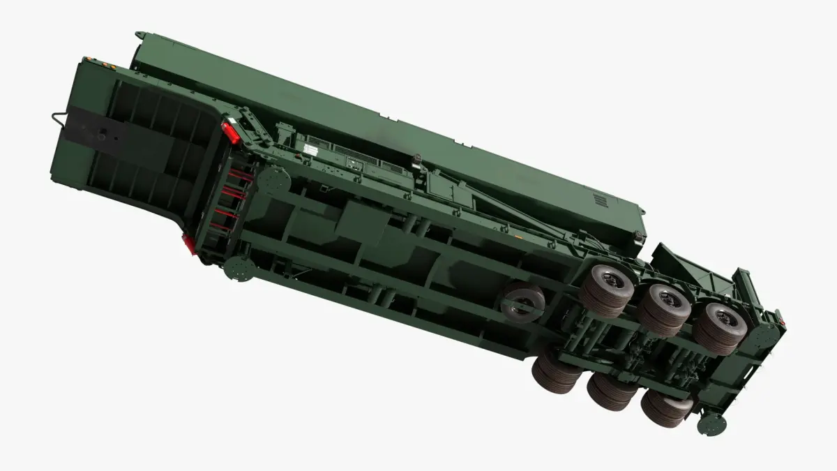 Hypersonic TEL Trailer Full Green Transport is a 3d model of a mobile missile launcher system used by military forces for strategic transport and deployment of missiles.