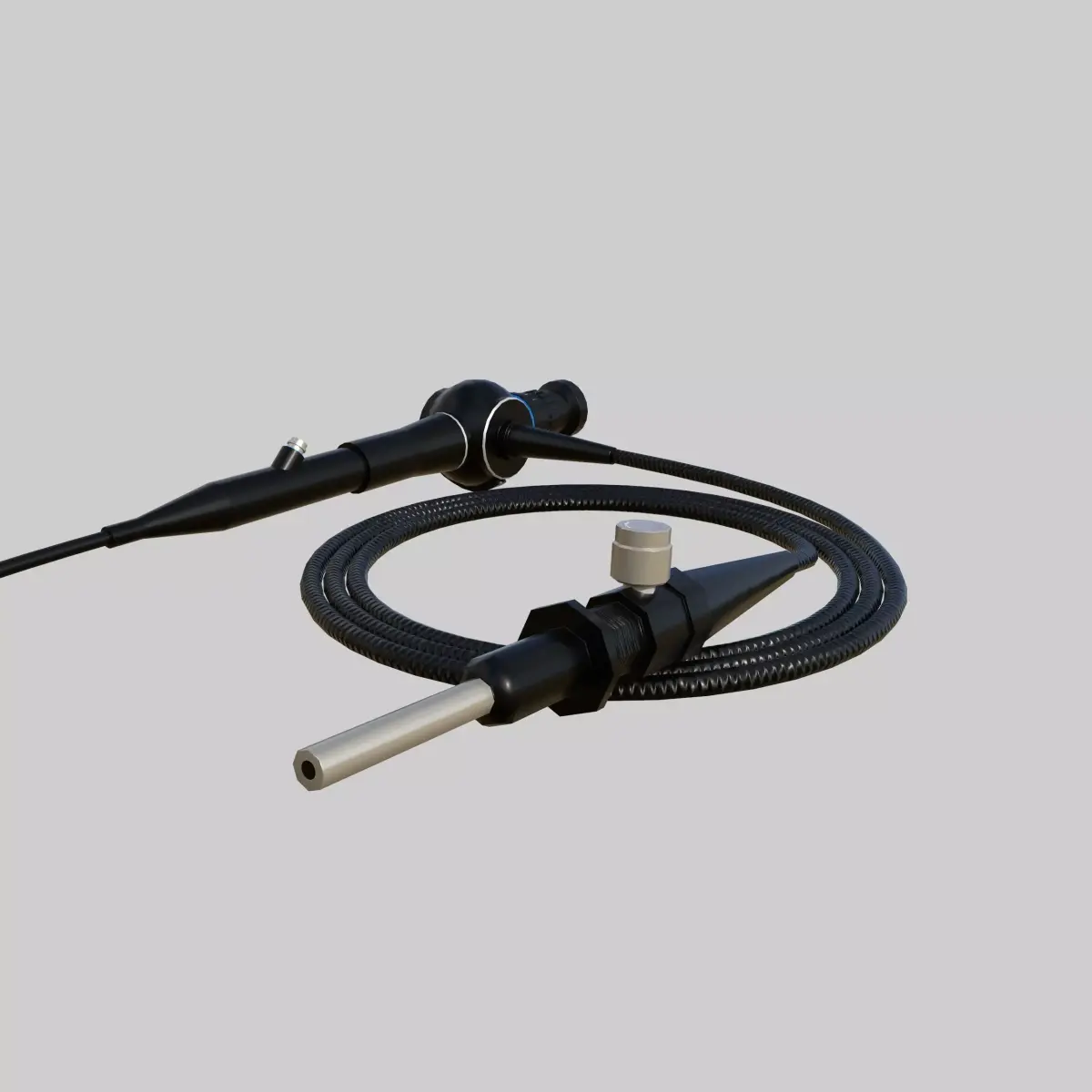 A detailed 3D model of a hysteroscope, commonly used in gynecological examinations and minimally invasive surgical procedures.This model includes accurate detailing of the insertion tube, handle, control knobs, and fiber optic/light channel, making it ideal for medical visualization, healthcare training, and surgical simulation projects.