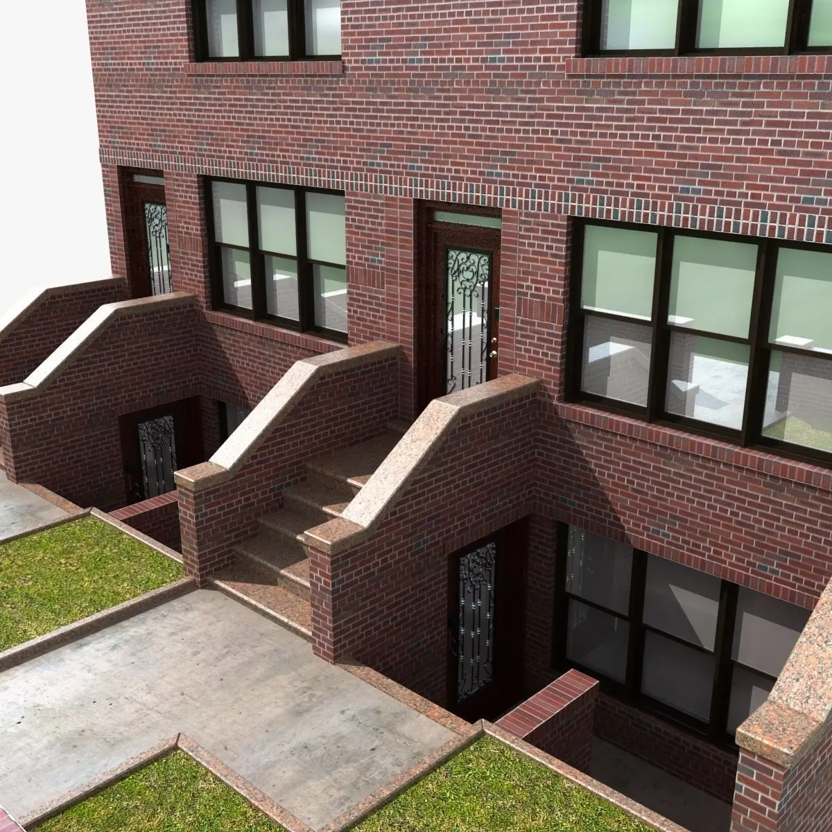 This is brick New York City old historic townhouse. Situated at Brooklyn near Prospecr park. You can easy copy them to create street of this blocked houses. Stairs made from granite. entrance door decorated by dark metal frame