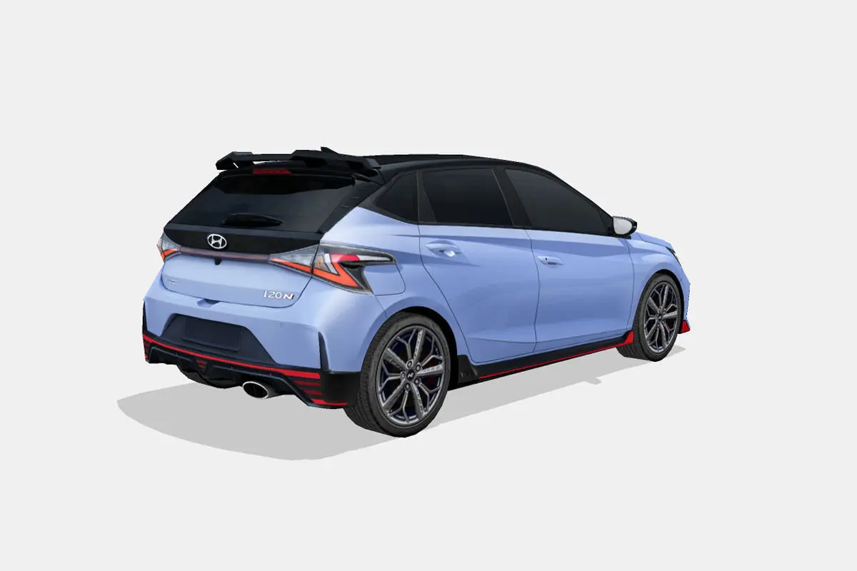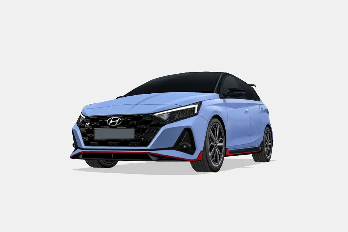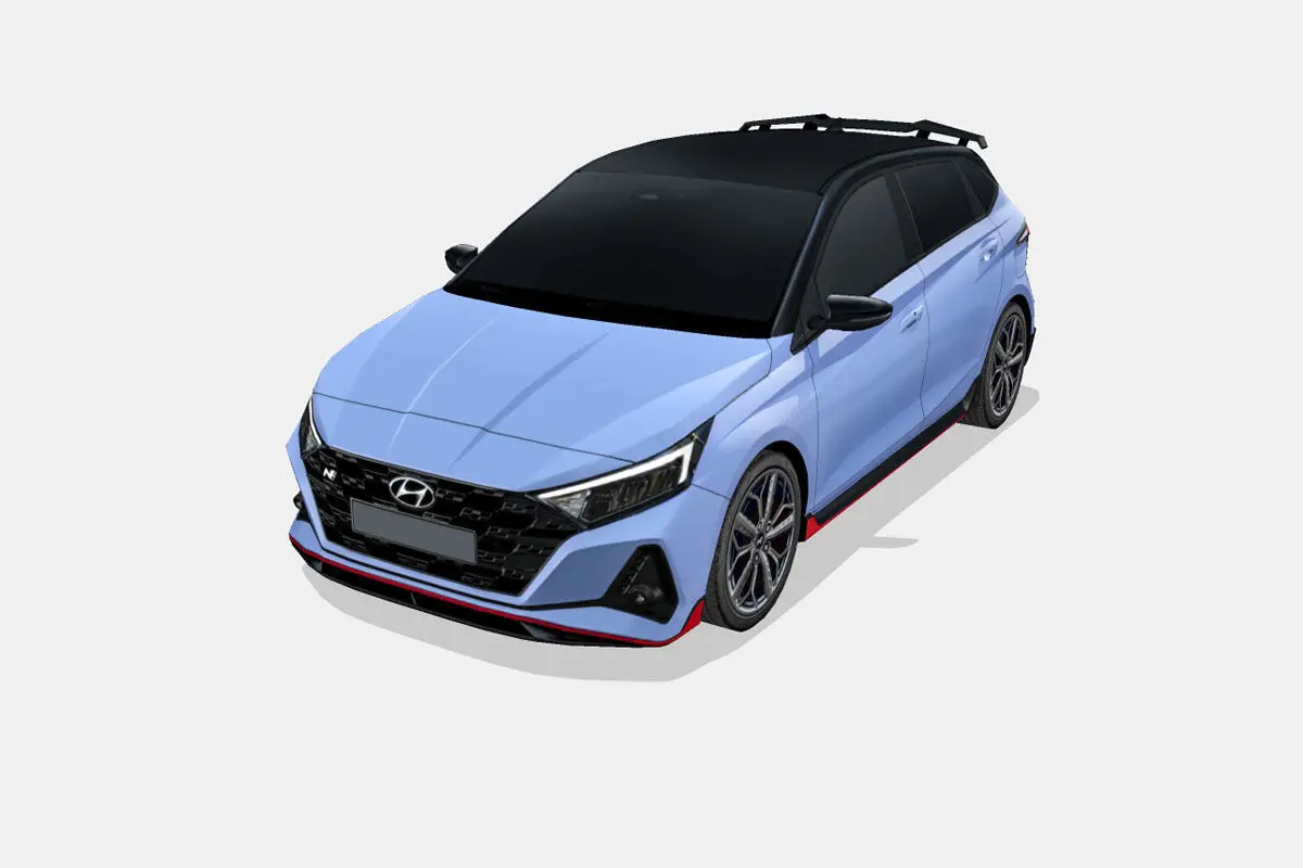 3d model of the 2021 Hyundai i20 N, a supermini or subcompact sports car.