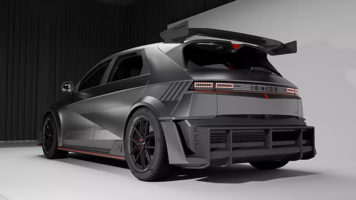 The Hyundai Ioniq 5 N NPX1 2024 3D model features a sleek, high-performance design with detailed aerodynamics, pixel LED headlights, wide fenders, sporty side skirts, and a large rear wing. Perfect for showcasing futuristic EV styling and motorsport-inspired elements in visualizations, animations, or presentations.