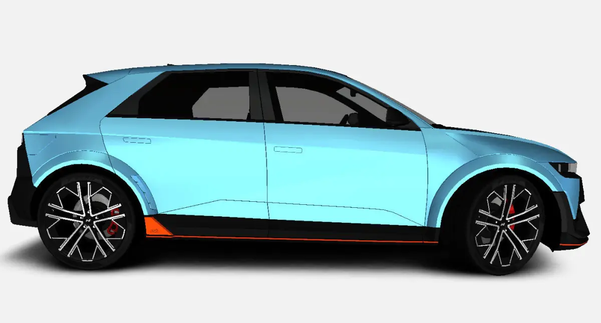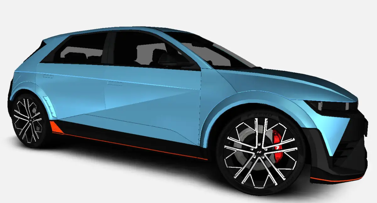 A Low-Poly Gameready model of Top-of-the-range Hyundai Ioniq 5 N. The N trim level is sport edition of electric Ioniq 5 SUV model. N offers R21 alloy wheels with factory-installed Pirelly P-Zero 275/35 tires, wider wheel arches, sport body kit that includes both bumpers and sideskirts with black metall and orange trims, painted wider door trims, new spoiler, rear wiper and lens headlights with built-in turn lights. Model offers pure geometry, detachable license plates with detailed mounts, detachable front & rear emblems with detailed mounts, detachable wheel center hubcaps, windshield VIN and other features aswell.