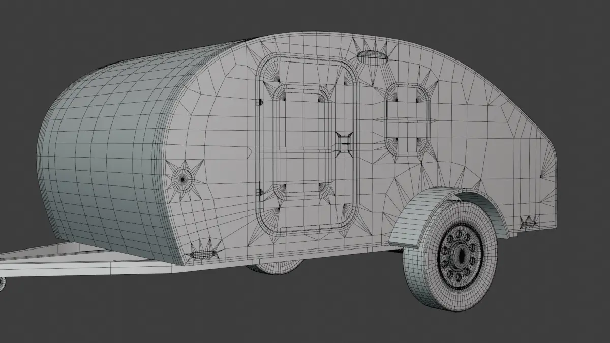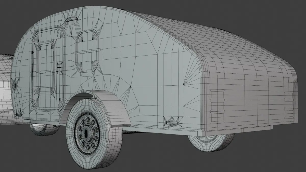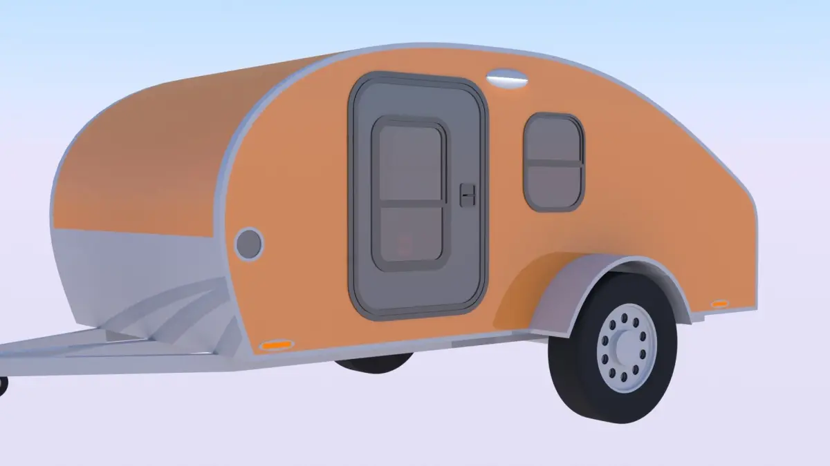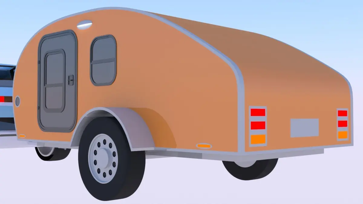 - This is 3D model of teardrop caravan with car.