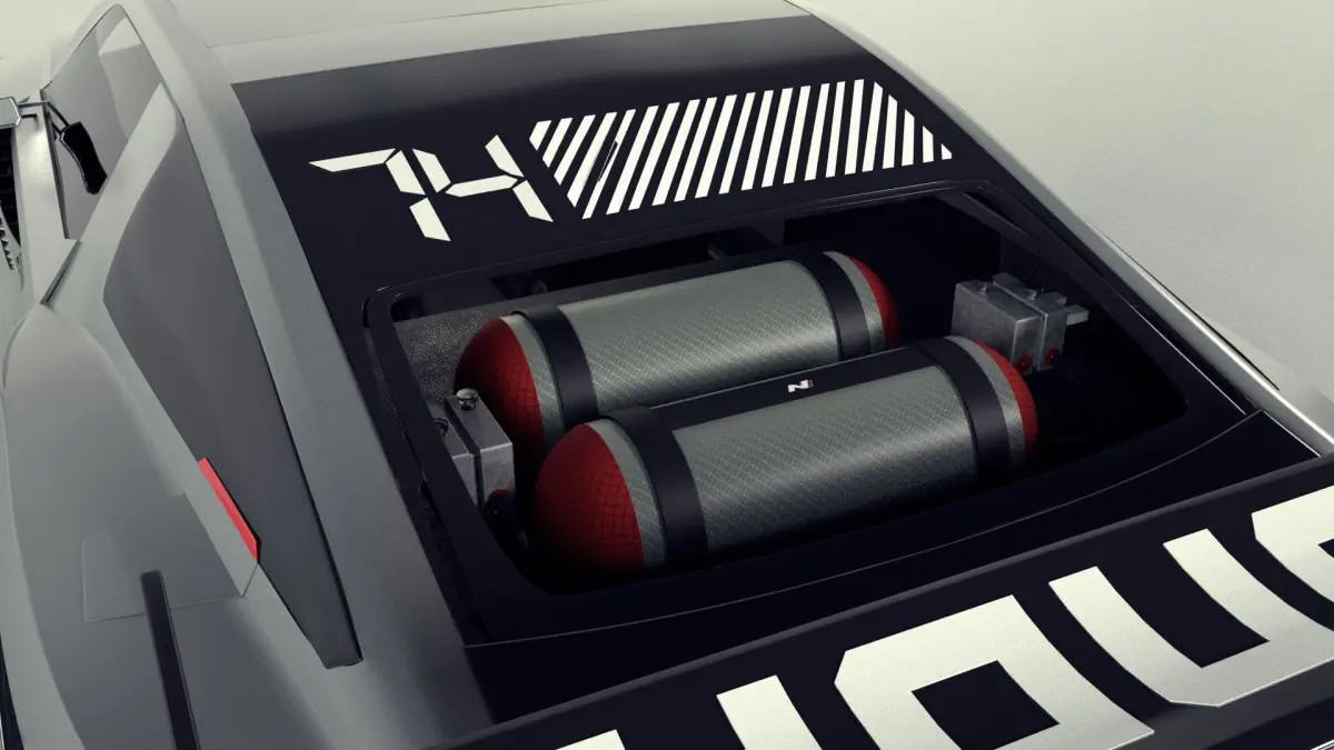 Rigged 3D Model of the new Hyundai N Vision 74 with opening and closing doors removable back glass, moving wheels .(complete rig)