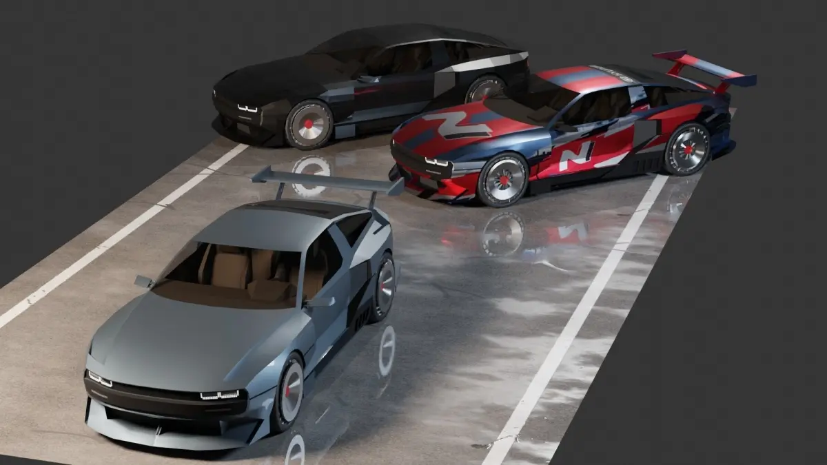 3 cars in set: Basic model + flat shaded model + tuned version. Each with own texture/material